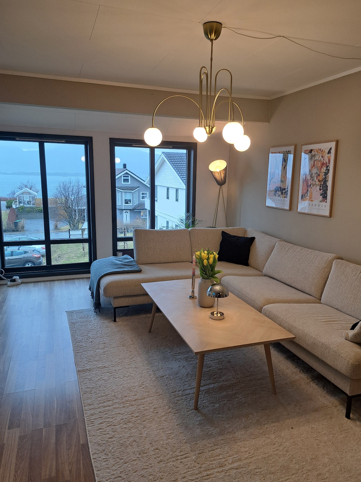 Casa adosada luminosa y moderna en una zona tranquila de Sandnessjøen con hermosas vistas al mar. Dos dormitorios grandes con cama matrimonial y dos baños. Comedor con capacidad para 8 personas, gran sofá y TV inteligente. Cocina totalmente equipada. Disfruta de la puesta de sol desde el balcón, o barbacoa con parrilla de gas en el apartamento detrás de la casa. Perfecto para familias o parejas de amigos, a poca distancia del centro de la ciudad, rutas de senderismo y experiencias en la naturaleza.