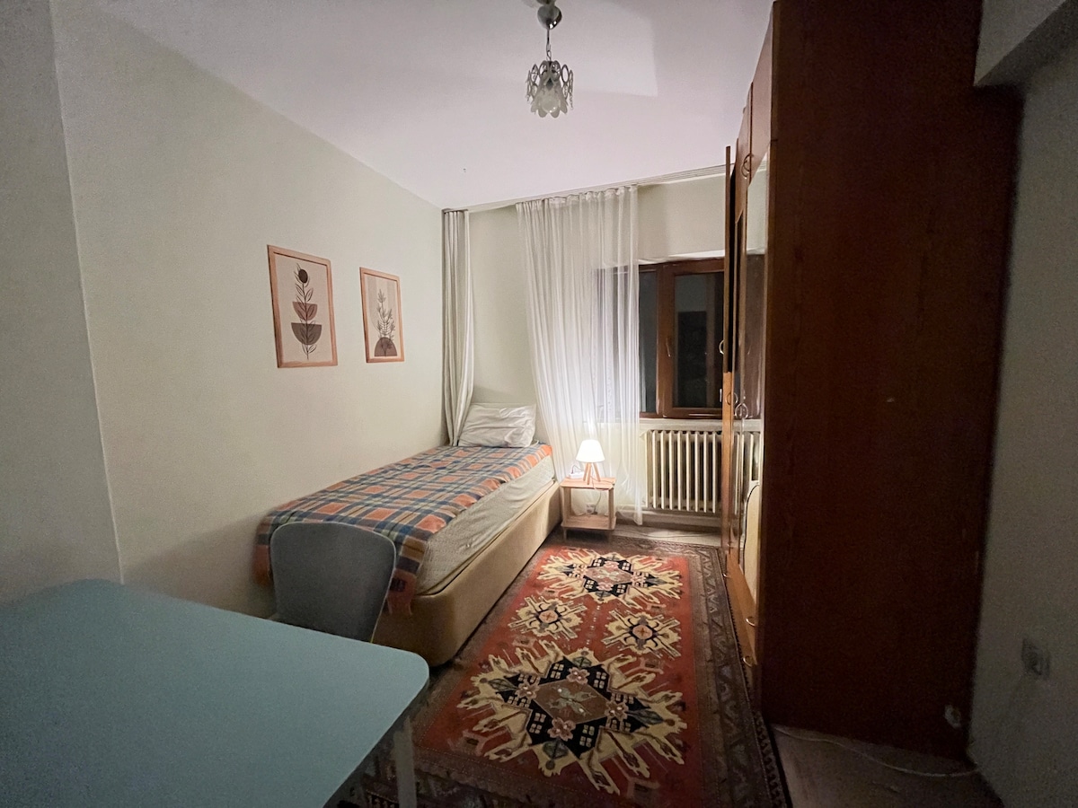 Private bedroom in Maltepe, within walking distance to Maltepe and Demirtepe metro stations (Ankaray), one station away from Kızılay (city center). Both Anıtkabir and Kızılay are also a 15-min walk away.