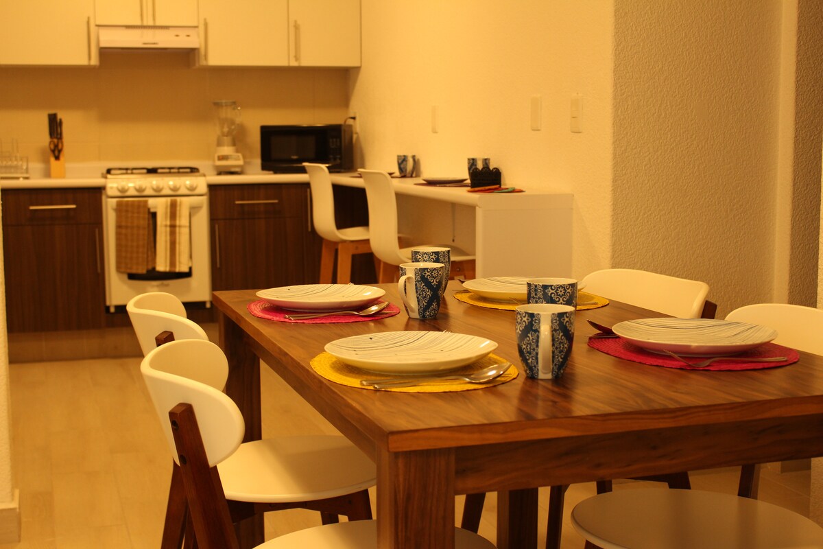 ¡Descuentos del 65% en estancias de una semana y 72% en estancias mensuales! Edificio México Chulo es un espacio ideal para estudiantes o gente en busca de vivir al puro estilo & look mexicano. El diseño del edificio permite tener multiples departamentos con 3 dormitorios, sala de tv, cocina y comedor. Diseñamos y decoramos al puro estilo mexicano, alegría y un ambiente acogedor. !!!Revisa disponibilidad en otros deptos de México Chulo!!!