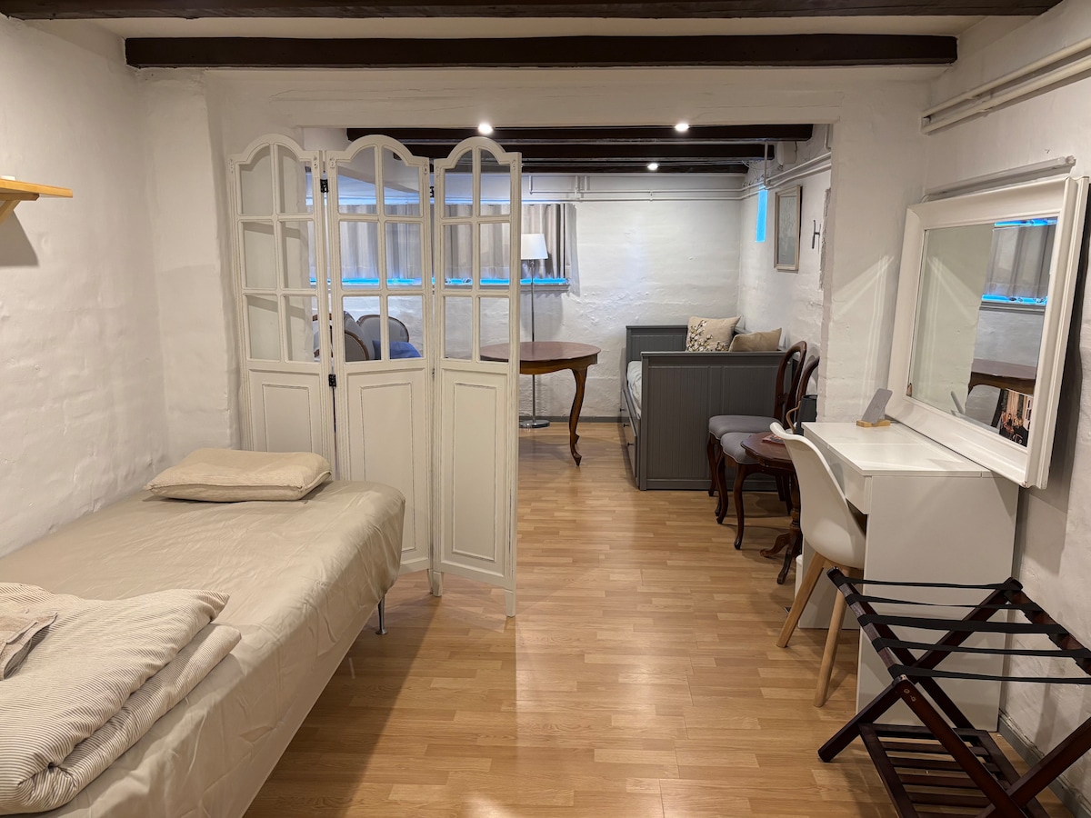 Departamento de una habitación, cama tamaño king, balcón, perfecto para una pareja/dos personas. Todo recientemente renovado, incluido el baño y la cocina sencilla con lavavajillas. Ropa de cama, toallas, etc. incluidas, TV de 55"y wifi inalámbrico gratuito. Ubicado en el quinto piso: hará su ejercicio diario y tendrá un departamento luminoso en la parte superior del edificio. Tenga en cuenta que no hay ascensor. Bonito patio trasero. Muy céntrico, por lo que ocasionalmente puede haber un poco de ruido de la calle. Lamentablemente, no hay aire acondicionado.