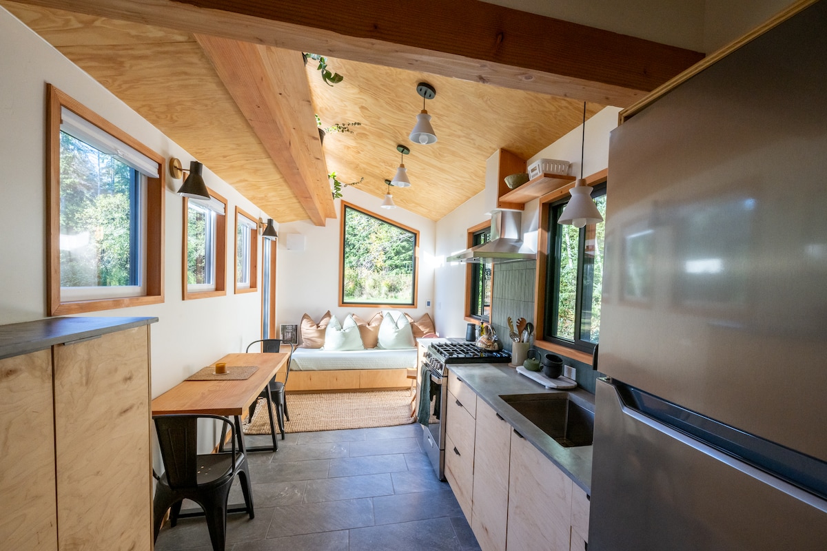 Disfruta de esta cabaña ecológica de nueva construcción a pocos minutos de Rialto Beach. Ubicado en un lugar privado en nuestro refugio natural, es un lugar tranquilo y relajante para aterrizar, totalmente equipado para tu estancia. Úsalo como punto de partida para explorar el West End del Parque Nacional Olympic, o acampa para descansar. Esta pequeña casa incluye una bañera de hidromasaje privada de leña y acceso compartido a nuestra sauna de cedro. ¿Viajas con amigos o familiares? No te alejes: también hay otras opciones de alojamiento únicas en el sitio.