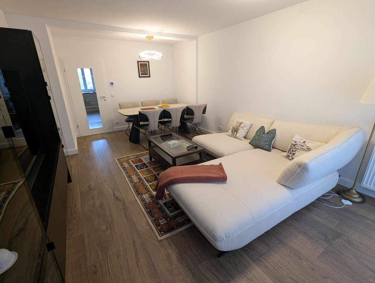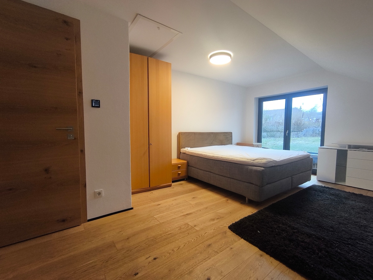 Apartamento amueblado con estilo en una casa adosada (nueva construcción) con el siguiente equipamiento: - Cama de 140 x 200 cm - baño privado - persiana eléctrica - Cafetera (incluye café) - Microondas combinado con convección - Nevera - Televisor - Wifi - Secador de pelo para invitados - Calefacción por suelo radiante - Control de ventilación central - Puerta insonorizada independiente con timbre/abrepuertas - Cómoda - Mesa de comedor - Vajilla - Aparcamiento gratuito - Posibilidad de carga de vehículos eléctricos - Equipamiento inicial incl. (ropa de cama, toallas)
