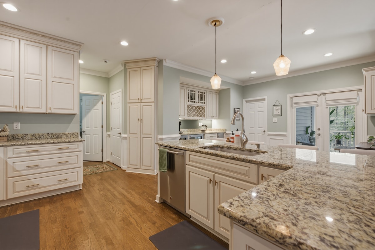 This is the perfect home for group trips. Ideal for multi-generation families or friends w/ kids! Comfortably sleeps 6 adults + 4 Singles/Kids 3 King Beds + 4 Twin Beds + 1 Pack-n-Play Every bedroom has its own bathroom! Kitchen has all of the essentials + more for your home-chef! Enjoy large dining table & a living room designed to encourage everyone to connect & relax! Sunporch & backyard patio for those perfect evenings + gas grill.