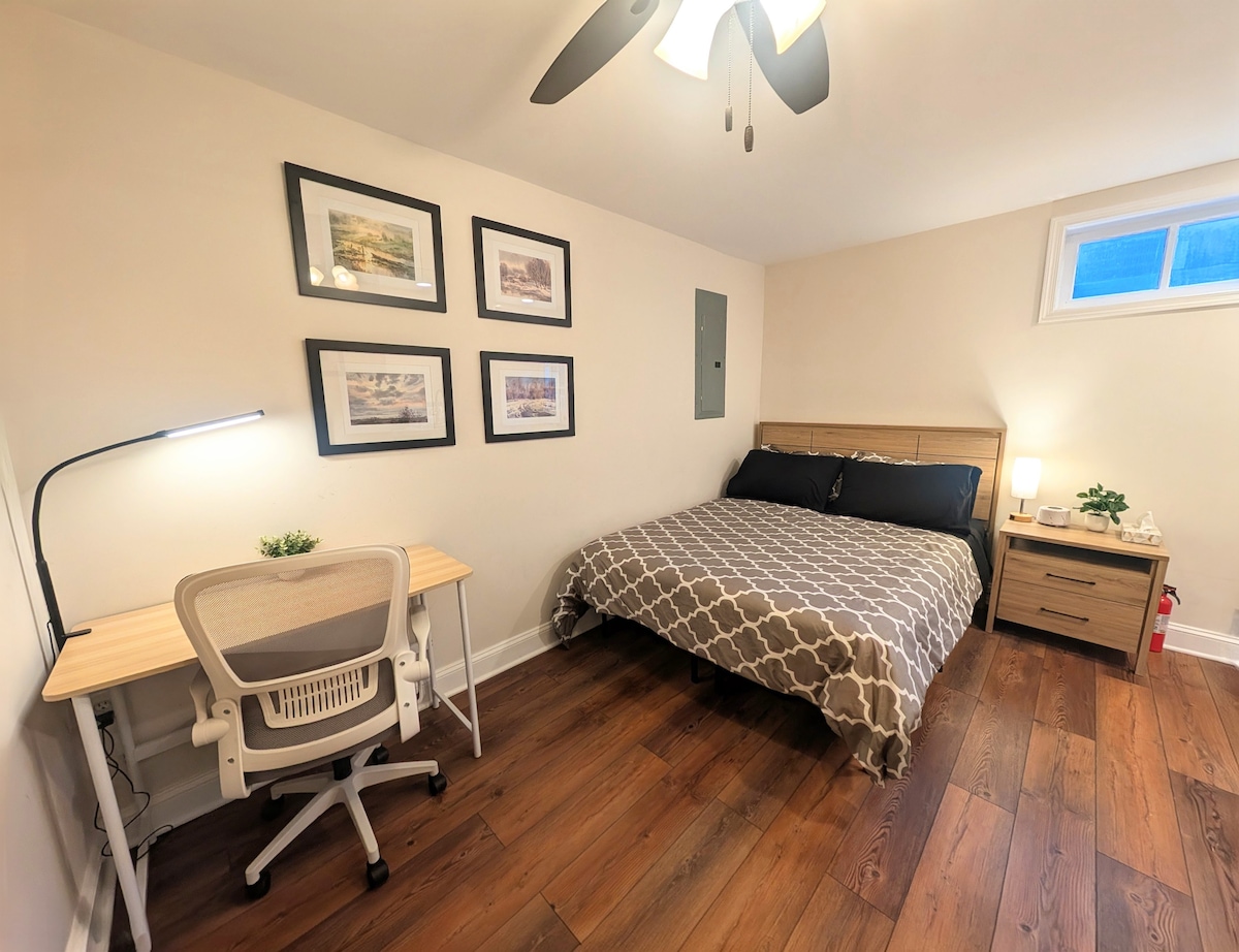 Welcome to your private retreat! This spacious basement suite with private entrance, private bathroom, & kitchenette. Perfect for solo travelers, couples, or professionals seeking comfort and privacy. ✔ Private entrance ✔ Queen bed ✔ Kitchenette with fridge, microwave, and utility sink ✔ Private bathroom ✔ Wi-Fi ✔ Safe & quiet neighborhood (Brewers Hill) Work or leisure, this cozy suite provides everything you need for a comfortable stay! (Entrance not suited for people with limited mobility)