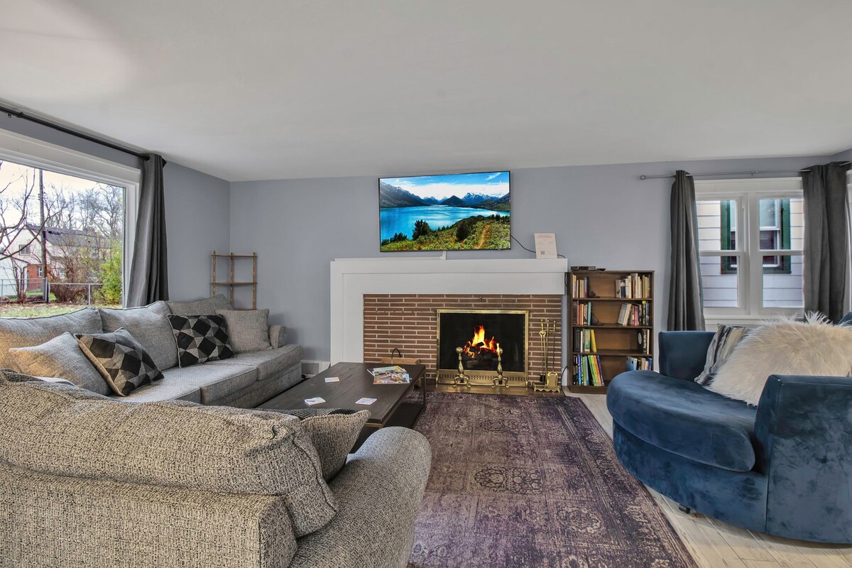 Características principales: 🔹 2 camas tamaño king, 2 camas tamaño queen, 1 cama completa, 2 camas individuales, 1 minicuna plegable, 1 colchón de aire queen 🔹 Piscina 🔹 Mesas de póquer y futbolín 🔹2 salas de estar Y sala de juegos 🔹 3 chimeneas y fogata Espacio de juegos para🔹 niños y comodidades Cena 🔹 al aire libre, barbacoa y sala de estar Ubicado en Amherst, Nueva York, Oasis es perfecto para familias ampliadas y multigeneracionales, fiestas de bodas, una escapada de chicas maduras o grupos grandes que viajan juntos y duermen durante 12 personas cómodamente (+bebé y niño pequeño).