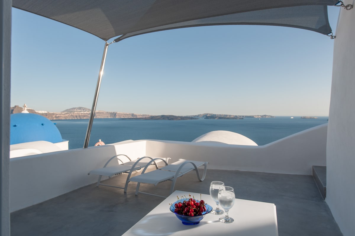 Casa cueva tradicional ubicada en el lugar más famoso de la isla de Santorini, con impresionantes vistas de postal a las iglesias de cúpula azul. 2 dormitorios, camas dobles y 2 baños cueva. ¡Piscina climatizada al aire libre con vistas! Al lado de Santorini Blue, Eternity y New Home Serenity. Totalmente equipada con todas las comodidades, cesta de bienvenida, servicio diario de limpieza/piscina, administrador de villas para ayudar con todas las actividades. Nuestras otras villas: Santorini blue, Eternity, Serenity, Captains blue, Secret garden, Sailing y Sky blue.