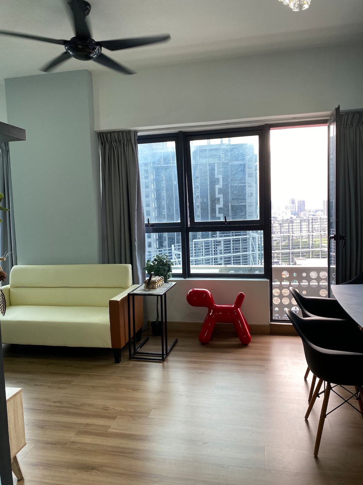Este apartamento de 1 dormitorio cuenta con una vista impresionante del horizonte de KL. Cuenta con un salón con sofá de 3 plazas, mesa de comedor, cocina, escritorio y un gran balcón frente a la Torre KL y las Torres Petronas. Viene con TV de 55 pulgadas, wifi de alta velocidad y una cama tamaño queen en la que puedes acomodarte cómodamente. *La otra unidad de este apartamento de llave doble es un estudio compacto con cama tamaño queen, despensa, baño y bañera. Pueden caber amigos que viajan contigo con privacidad. ¡Te invitamos a solicitar más información!