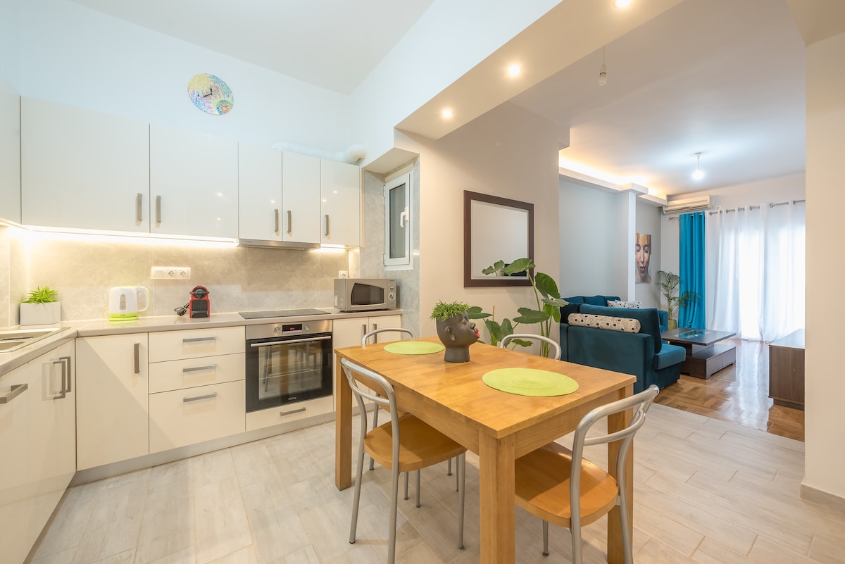 Apartamento urbano a 1 minuto a pie de la línea 3 del metro, que conecta directamente el aeropuerto con el puerto del Pireo. Apartamento urbano de 55 m² (reformado en noviembre de 2023) de estilo contemporáneo y sofisticado que da la bienvenida a visitantes/viajeros de todo el mundo al ambiente de la vida ateniense y a los lugares de interés más conocidos. Descubre las atracciones más famosas de la ciudad, como el museo de la Acrópolis y el Partenón, a 10 minutos en metro. ¡Comienza tu exploración de Atenas desde aquí!