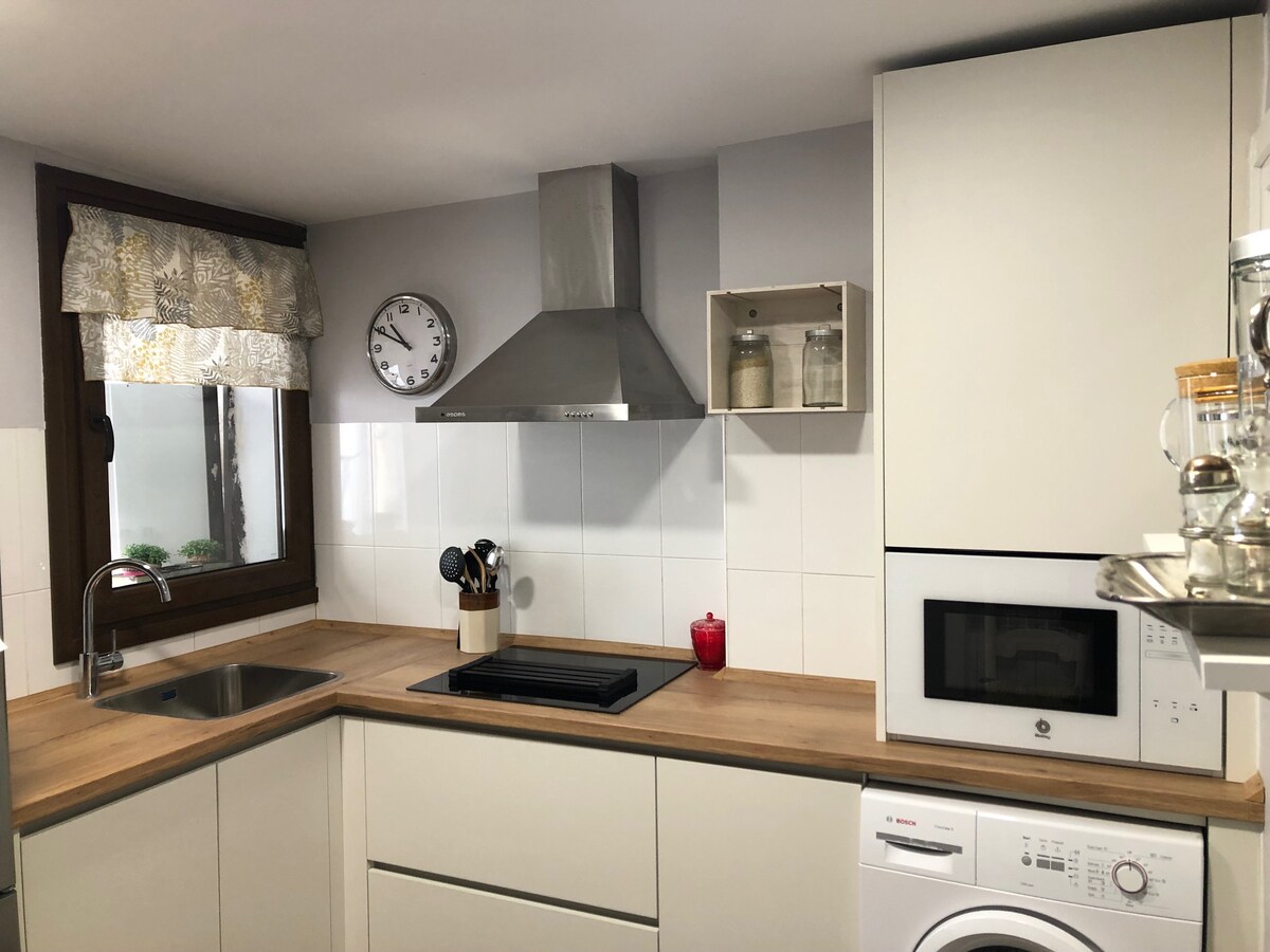 Este apartamento de estilo moderno se encuentra dentro de un típico caserío vasco con más de 500 años de antigüedad. Ubicado concretamente en la localidad guipuzcoana del barrio de Ergoyen, no muy lejos de San Sebastián (15Km), a los pies del parque natural de Aiako Harria y a orillas del río Oiartzun. La ubicación permite visitar los pueblos costeros de alrededor, hacer senderismo, y runnig por la ruta de Arditurri de 20Km que pasa junto por la casa.