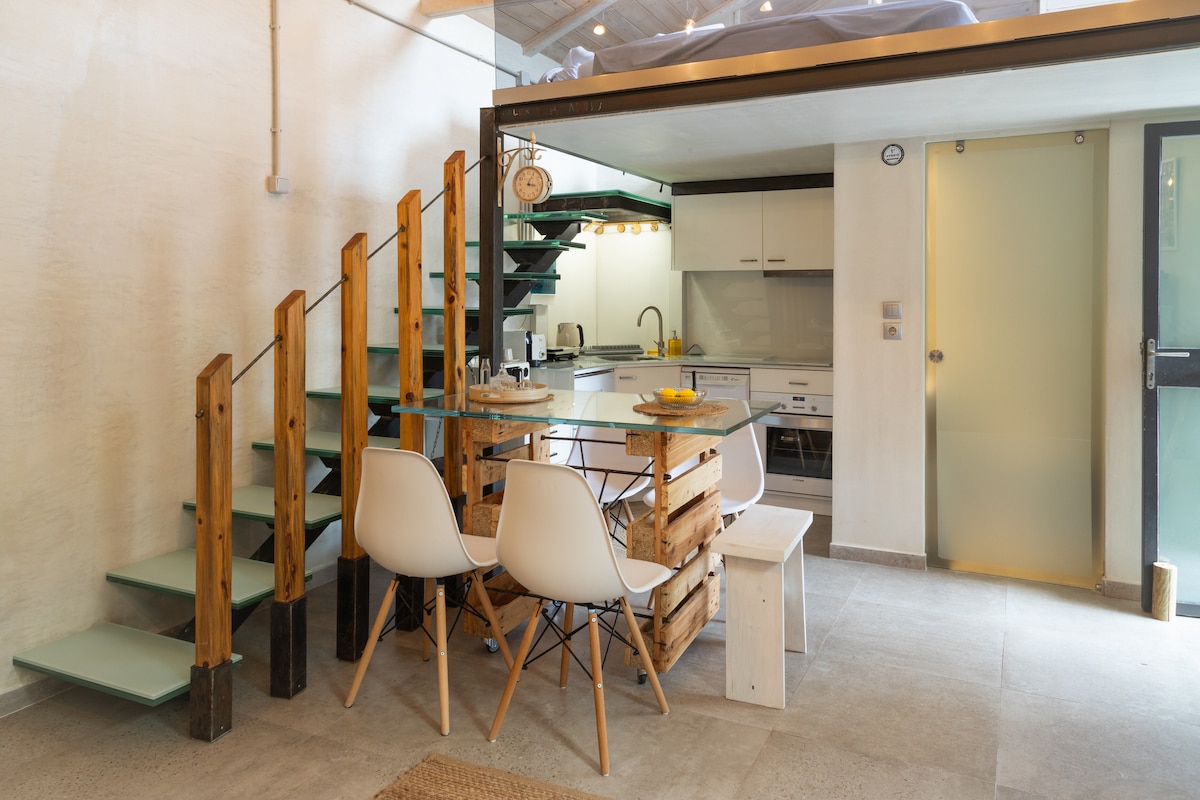 Este moderno y nuevo estudio te permite despertarte bajo las rocas de Meteora. Este estudio totalmente equipado es perfecto para viajeros y parejas que buscan una escapada inolvidable. Comienza tu mañana con un café griego tradicional en nuestro patio. ¡Disfruta de la tranquilidad y los sonidos de nuestro propio refugio privado, con la aventura de Meteora en tu puerta!