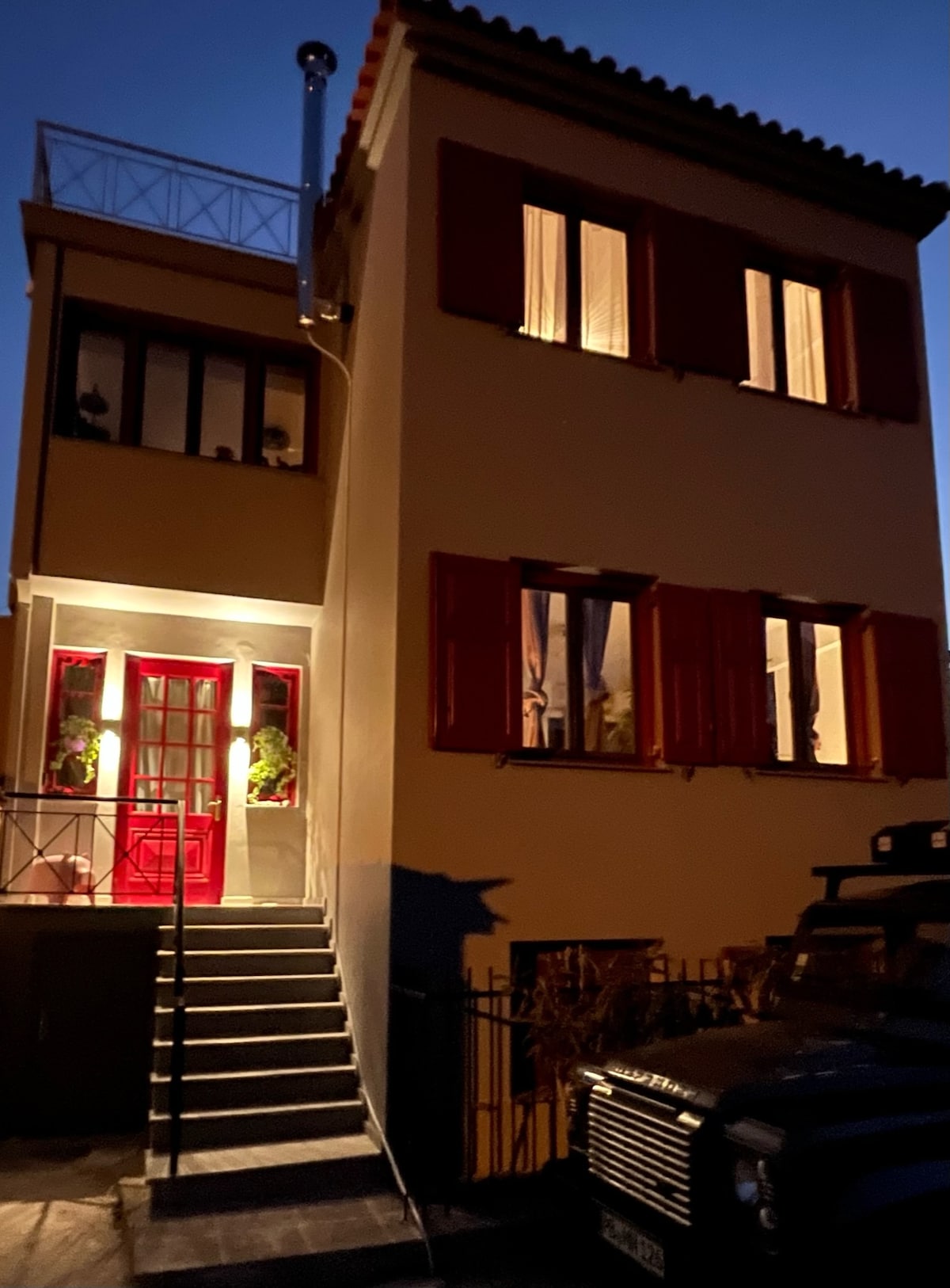 Bienvenido a nuestra casa de piedra en el pueblo tradicional de la isla de Lesbos. Ubicado en siete acres, disfruta de impresionantes vistas al mar, huertos y robles. A solo 3 minutos en coche de playas y tabernas vírgenes, tradición con comodidad moderna. Como parte de Amazones Eco Land, la comunidad de mujeres, la casa ofrece privacidad. Los huéspedes pueden cosechar de nuestro jardín orgánico (de temporada) y cocinar en la cocina al aire libre. Mejoramos las áreas al aire libre a la sombra y mejoramos la refrigeración para una estadía perfecta en todas las estaciones.