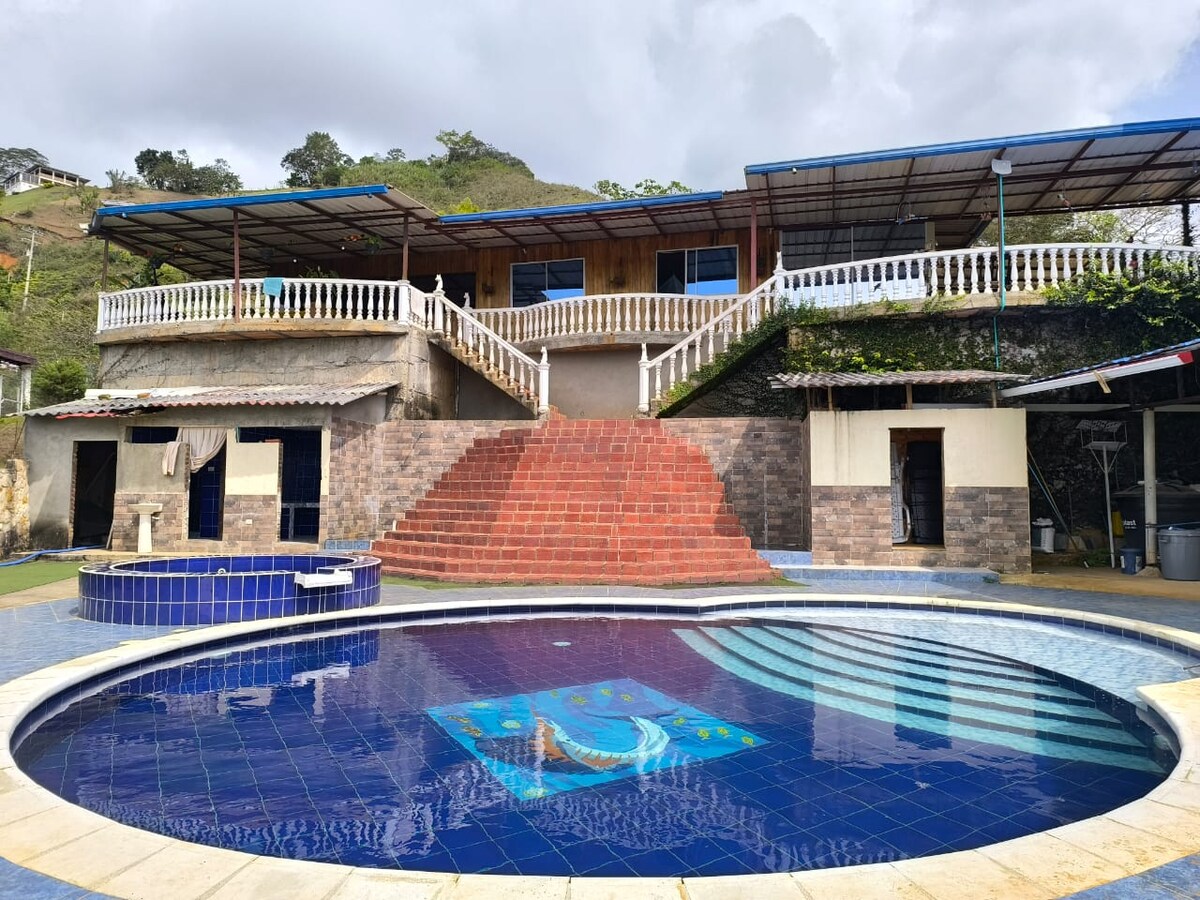 Bienvenido a tu escapada a la montaña en Dagua. A solo 45 minutos de Cali, esta espaciosa cabaña de 5 dormitorios es ideal para grupos, familias o retiros. + Piscina privada/jacuzzi + Chimenea + vistas a la montaña + Campo de fútbol, barbacoa + Wifi, cocina completa, aparcamiento seguro Relájate junto al fuego, sumérgete en el jacuzzi bajo las estrellas o disfruta de un partido en tu propio campo de fútbol. Capacidad para 28 personas cómodamente. Perfecto para amantes de la naturaleza, nómadas digitales y escapadas de fin de semana. ¡Reserva ahora para disfrutar de un retiro en grupo inigualable!