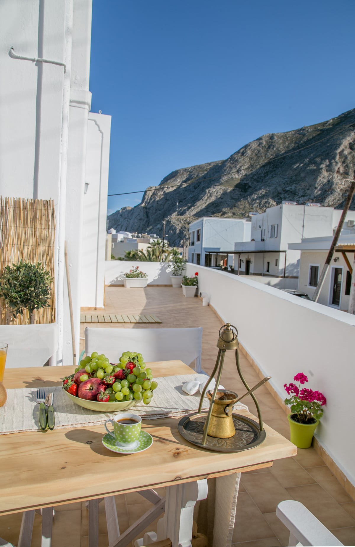 La suite homónima de Mirabo Villa, construida en estilo dúplex, tiene dos dormitorios nivelados diferentes con camas dobles, lo que la hace ideal para familias, grupos de amigos y recién casados que quieran disfrutar de sus vacaciones de una manera muy cómoda y relajante. Los dos baños separados y espaciosos están bellamente diseñados y la sala de estar ofrece horas de relajación. En el segundo piso, puedes disfrutar de las vistas a la caldera y al volcán y de la puesta de sol desde el balcón privado.