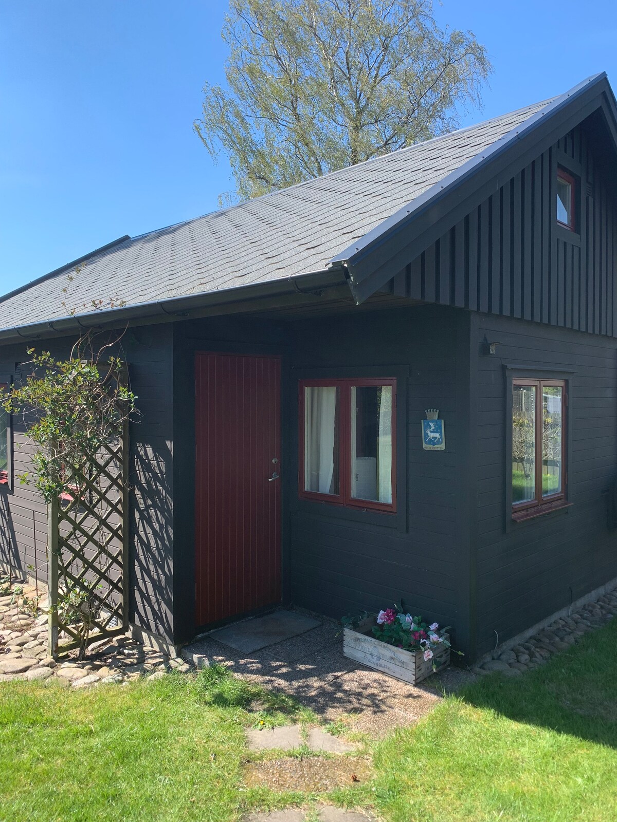 Ven a vivir cerca de la naturaleza y los animales, cerca de las dos penínsulas en el noroeste de Escania mientras obtienes ese pequeño extra. Estacionamiento justo fuera de la cabaña. Acogedora casa de 65 metros cuadrados, el alojamiento se ha renovado en 2025 con un nuevo diseño interior, fachadas recién pintadas y células solares en el techo en 2021. En un radio de aprox. 10 30 minutos encontrarás, entre otras cosas, golf, canchas de pádel, mercados de pulgas, museos, playas, varias ciudades, carriles bici, parques nacionales, Skåneleden y safaris de alces.