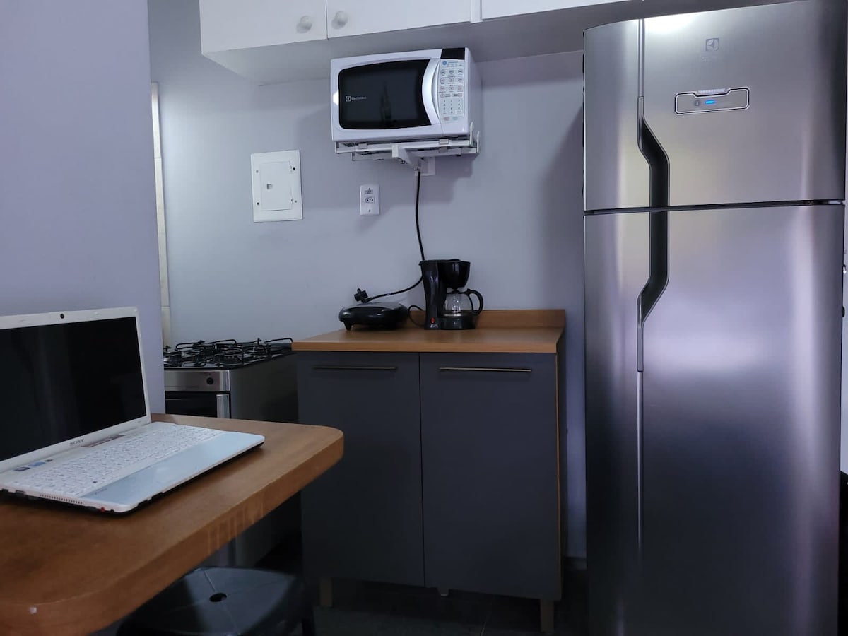Estudio plano, situado en Condomínio Angra Inn, en Praia Grande, con aguas limpias, cristalinas y tranquilas. A solo 3 km del centro de la ciudad, aproximadamente a diez minutos en coche. El apartamento se entrega limpio. Durante la estancia, la limpieza no será realizada por el condominio. Los inquilinos deben traer la ropa de cama y de baño, ya que no se proporciona. Existe la posibilidad de alquilarlos con coste adicional. REGISTRO DE ENTRADA: 15:00/REGISTRO DE SALIDA: 12:00. Los huéspedes tendrán acceso a toda la estructura del condominio.