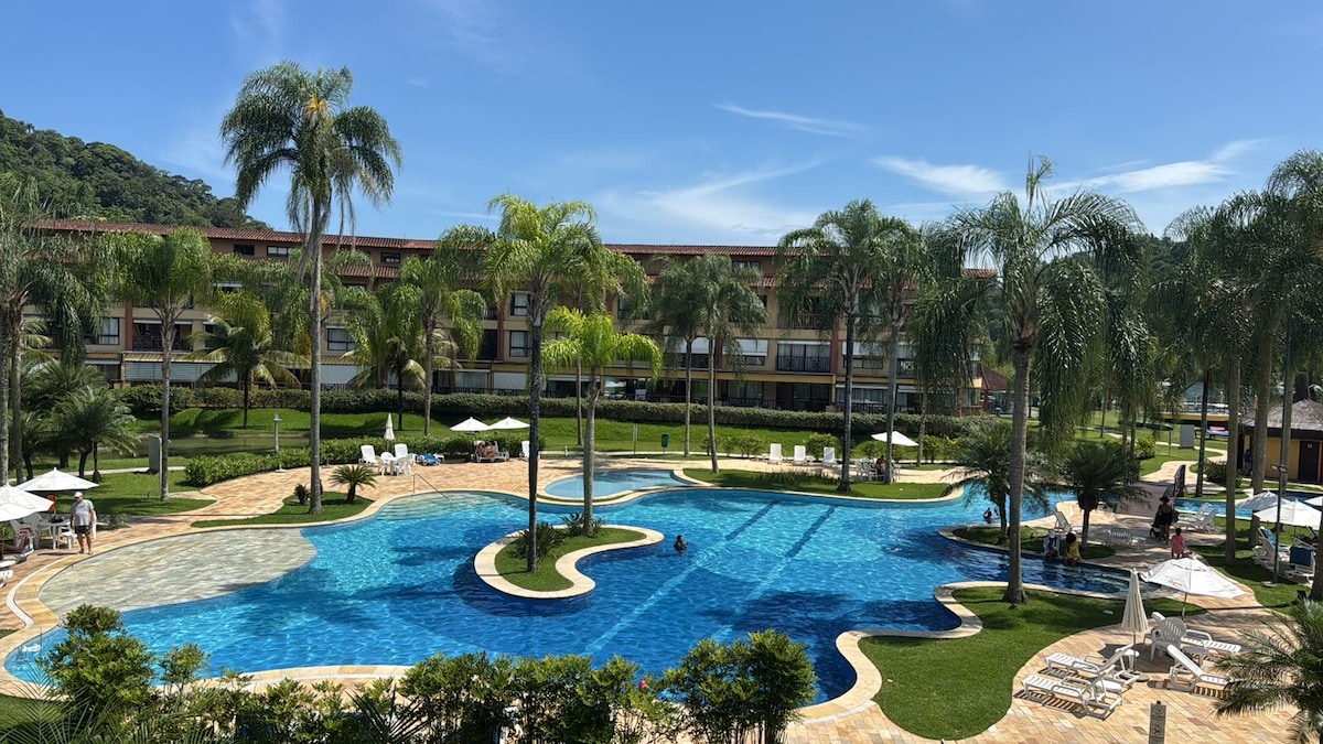 Conforto, Lazer, tranquilidade e segurança. Um complexo de piscinas à beira-mar, segurança e portaria 24h, marina para passeios de lancha e Jet, não temos vagas para Jet e Lancha, gerador, wi-fi , cama king, sofá retrátil, ar-condicionado, Tv, frigobar, Air fryer, microondas, fogão elétrico, cafeteira, sanduicheira, liquidificador, filtro de água, parquinho, bar molhado, quadra de tênis e poliesportiva, futmesa, lojas de conveniência. Divirta-se neste lugar maravilhoso e cheio de estilo.
