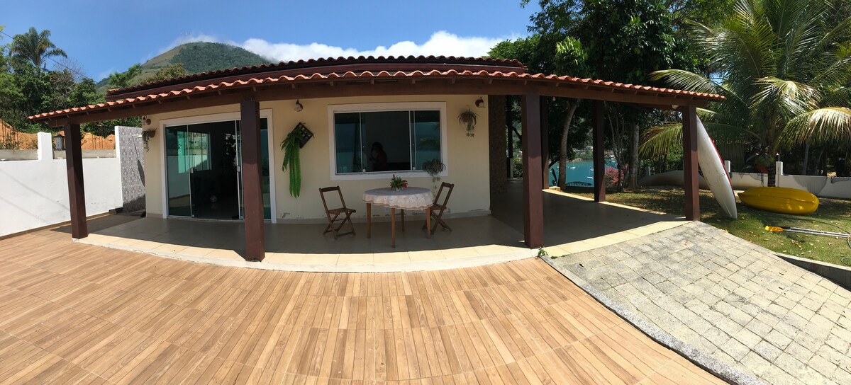 El paraíso está aquí. Acogedora casa junto al mar, en un vecindario tranquilo, a menos de 10 km del centro de Angra do Reis. La casa tiene una gran sala de estar, cocina americana y 1 baño completo en la planta baja, y 2 suites con impresionantes vistas al mar en el de arriba. Un delicioso césped con barbacoa y cocina de leña. Tiene una piscina para barcos y un muelle (compartida con la casa de al lado y utilizada solo cuando es necesario). La casa está equipada con utensilios de cocina, ropa de cama.