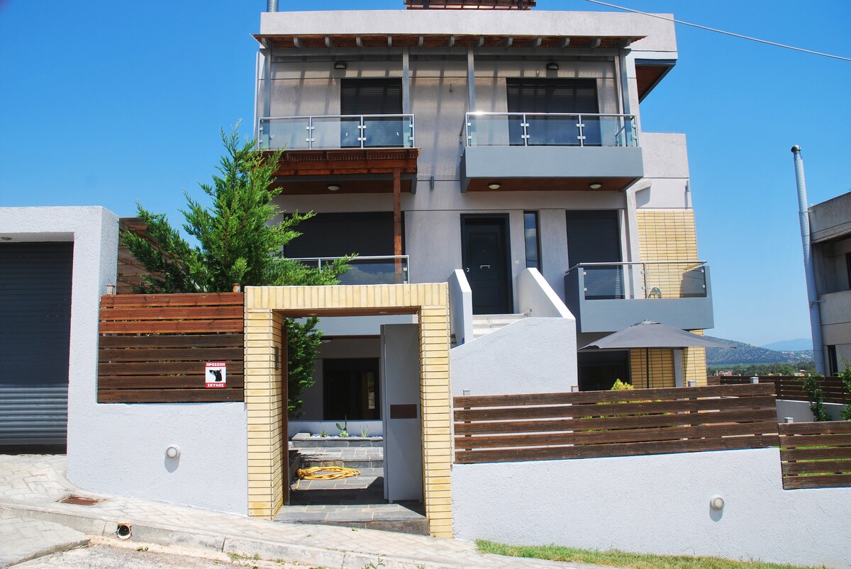 Estudio minimalista a 10 minutos del aeropuerto, recientemente renovado, independiente, con baño privado y cocina. Acceso a jardín (compartido). Se encuentra en un lugar tranquilo, en una colina, muy cerca de: - el Metropolitan Expo (10 minutos), - el puerto de Rafina (15 minutos), - Smart Park y Designer Outlet (5 minutos), - Zoológico (5 minutos), - Estación de metro (5 km), Ideal para vacaciones, compras, viajes de negocios o para aquellos que desean trabajar digitalmente con wifi rápido y gratuito.