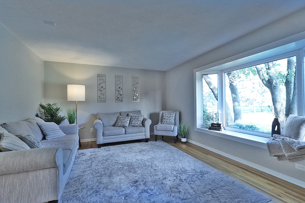 ¡Bienvenido a nuestra espaciosa casa de cuatro dormitorios, perfecta para grupos grandes y familias! Con una distribución de las camas acogedora, todos se sentirán cómodos. Justo al otro lado de la calle, disfruta de acceso a un maravilloso parque con un gran parque infantil, áreas de picnic, canchas de tenis y baloncesto y senderos para caminar, ideal para todos. Relájate en nuestras dos cubiertas y sumérgete en el hermoso MN al aire libre. Nuestra casa ofrece un acceso rápido y fácil al centro de Minneapolis, haciendo que su estancia sea relajante y cómoda.
