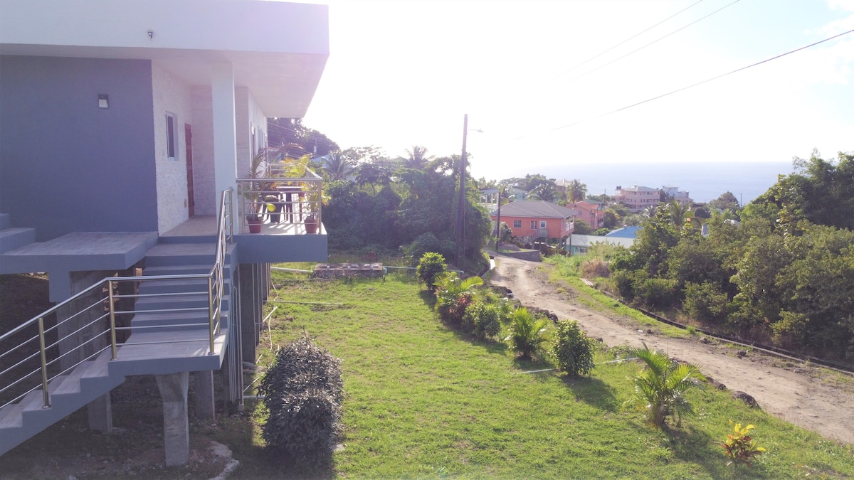 Una de las 3 suites (consulta mi perfil para ver otras suites) dentro de nuestra casa familiar, ubicada en 4 acres de tierra tropical con magníficas vistas al norte y a la isla vecina de Martinica. Disfruta de los atardeceres más increíbles en el amplio patio. A pesar de su tranquilidad, la propiedad está idealmente ubicada a menos de 10 minutos en coche de la ciudad y de algunas playas. A 2 minutos a pie por nuestra entrada y estarás en la ruta del autobús. A 10 minutos a pie hay una panadería, un minimercado, bares, restaurantes y furgonetas de comida.
