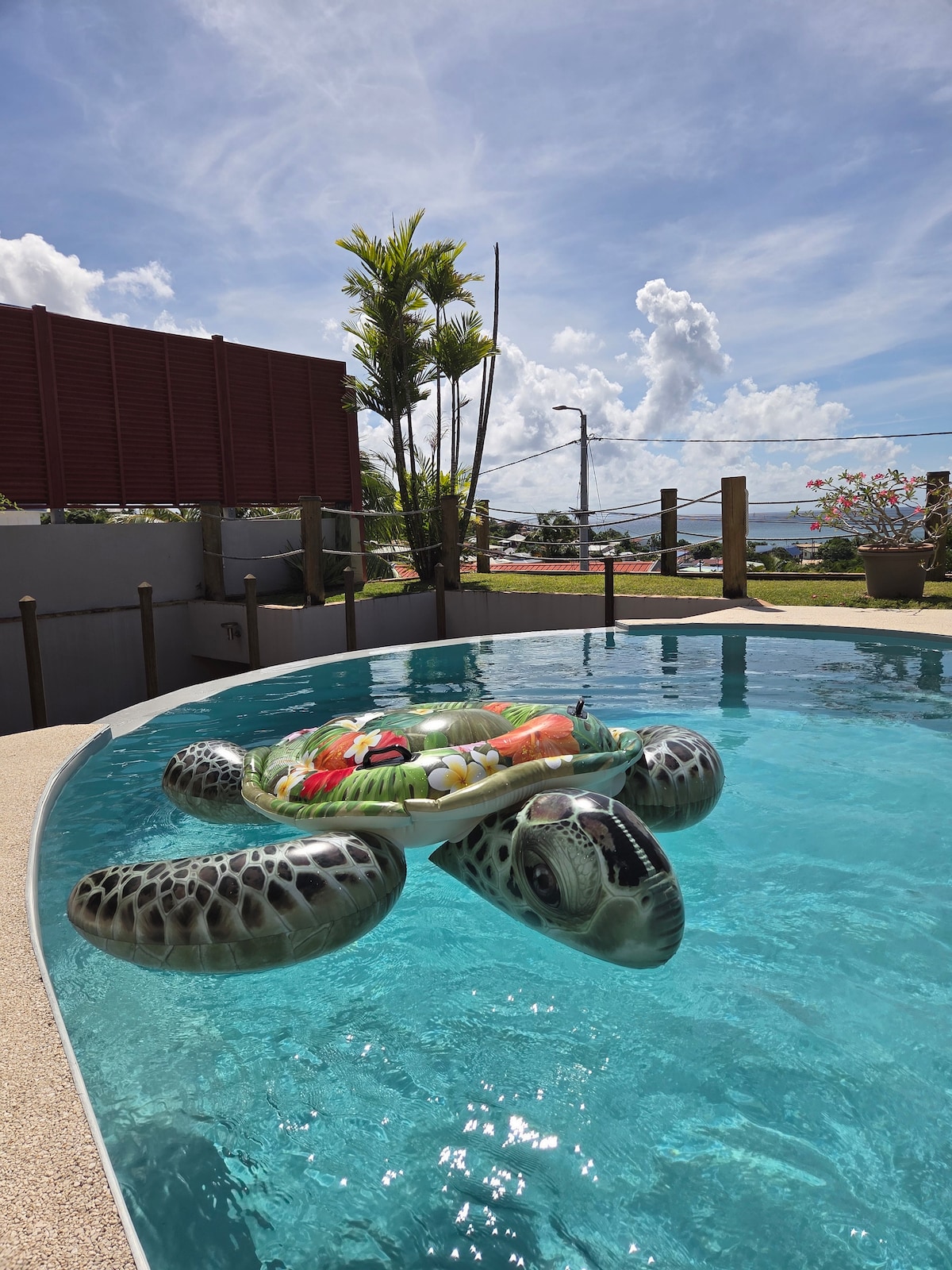 Magnífica villa, situada en las alturas de Sainte Luce, y cerca de la playa Incluye 2 dormitorios con aire acondicionado (camas dobles) + vestidores + 2 baños, piscina privada (con alarma y barrera) Vista panorámica de 180 grados del mar Caribe y del jardín. Ubicado en plena naturaleza, disfrutará del canto de los pájaros y del jardín. No hay roscas. A 5 minutos de la playa y de los servicios (Carrefour Express, farmacia, restaurante). Capacidad: 4 personas + 1 bebé