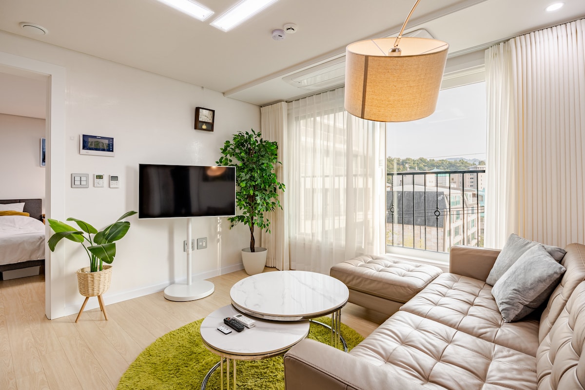 Es un espacio de cálida sensibilidad en tonos de madera y blanco. Te daré un día cómodo en el centro de la ciudad. Descansa. Se encuentra frente al Centro de Convenciones de Suwon a 4 minutos de Galería Department Store, Se encuentra a 10 minutos de la estación Gwanggyo Jungang. Cerca del parque del lago Gwanggyo, calle de cafeterías, el elevado, etc. Hay muchas cosas que ver y hacer. En el interior del edificio hay una variedad de restaurantes, Starbucks, Olive Young, lavandería, Kyobo Book Center, tiendas de conveniencia, salones de belleza, etc.