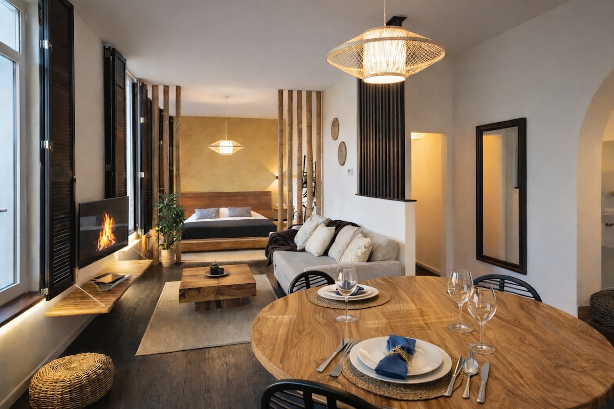 Loft japonés en el corazón de Amberes Descubre la tranquilidad en este auténtico loft de inspiración japonesa, perfectamente situado sobre el vibrante Theaterplein de Amberes. Tu retiro incluye: Serenidad 🎌 oriental - Diseñado meticulosamente por un arquitecto de interiores Diseño 🌸 espacioso con baño de inmersión profunda Rituales ☕ matutinos: bebe matcha en tu balcón privado 🚗 Aparcamiento subterráneo seguro (25 €/día) Por qué la ubicación es importante: • Mercado dominical con delicias artesanales a continuación • A 5 minutos a pie del distrito comercial de Meir