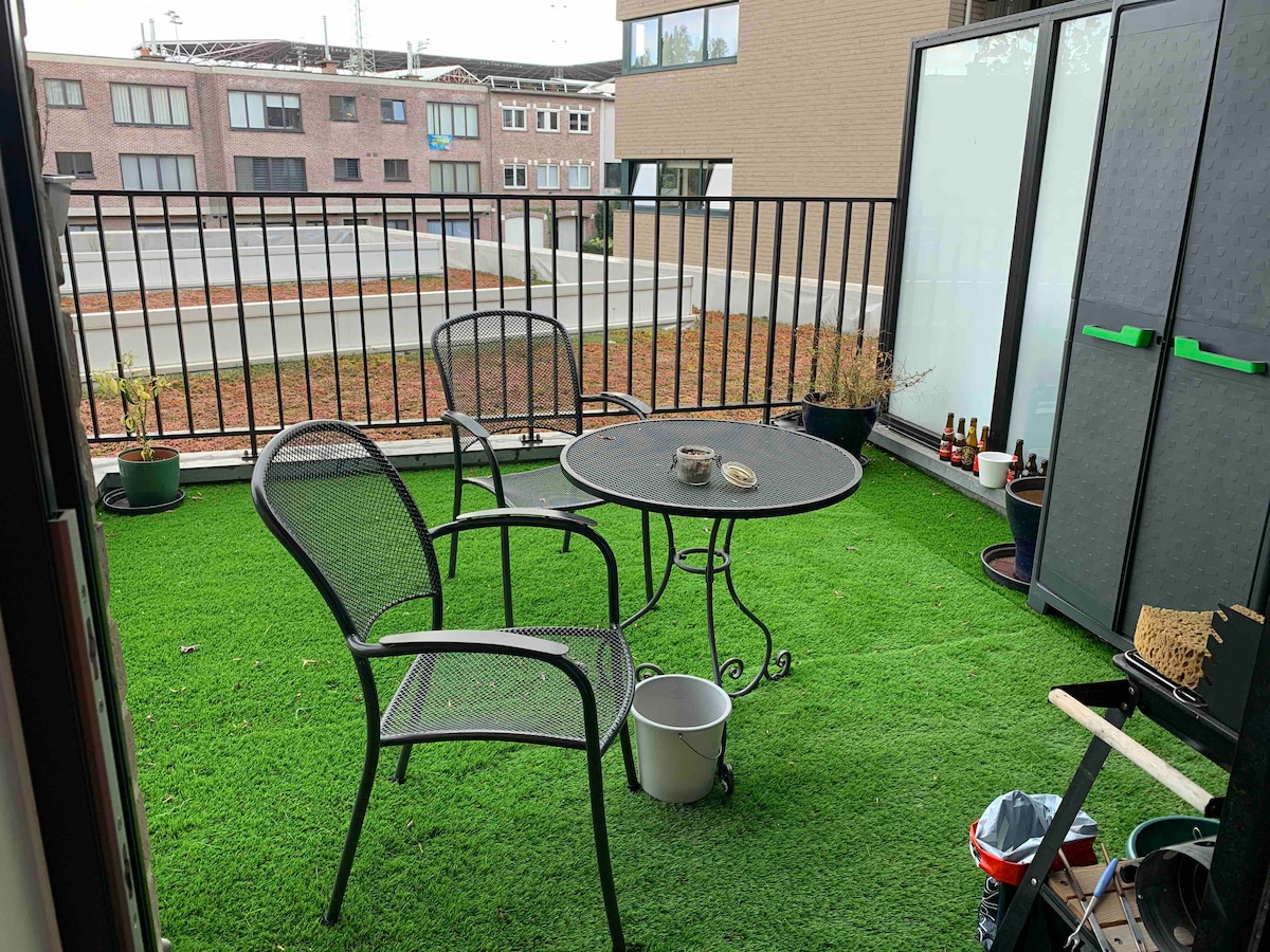 Nuestro apartamento de 93 m² está situado en el centro de Amberes, en una pequeña y tranquila residencia, tiene 2 terrazas, 2 dormitorios con camas de calidad, una cocina abierta (totalmente equipada), un cómodo baño y un inodoro separado. El interior es una mezcla de muebles familiares antiguos y elementos de diseño recientes. Por supuesto, hay una televisión inteligente y una buena conexión wifi disponible. También hay una lavadora y un armario de secado para tu comodidad. Nos encanta un enfoque personal, ¡espero que a ti también!