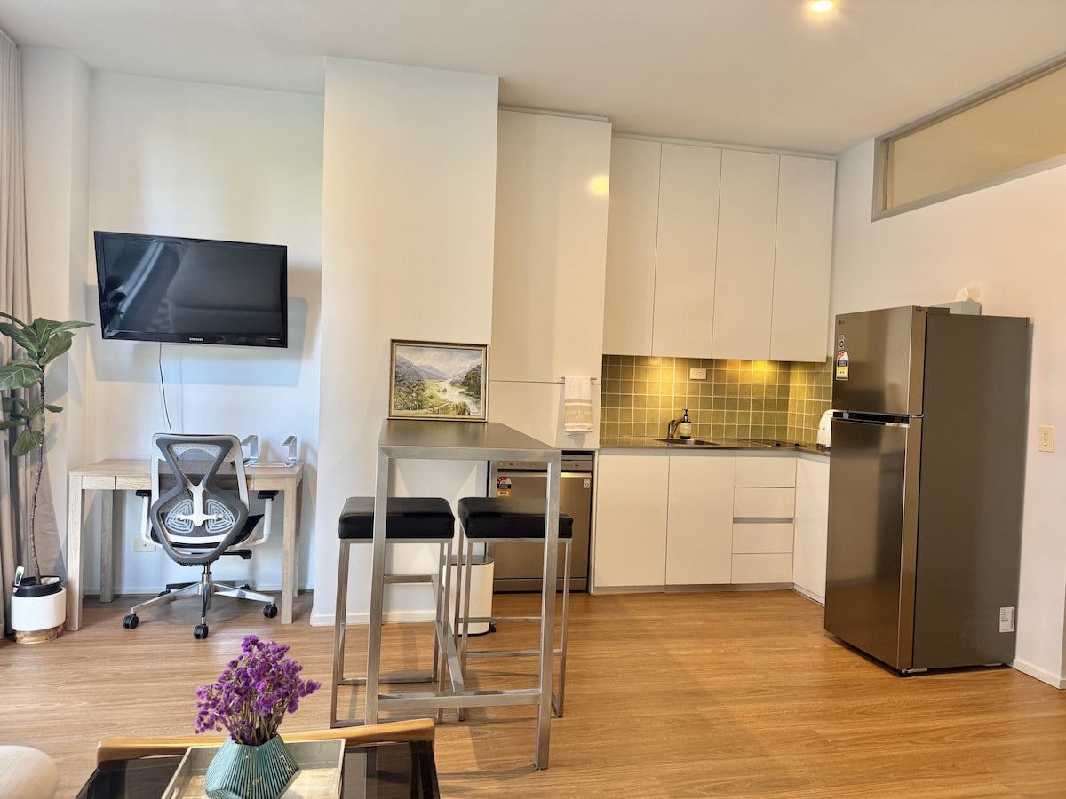 Beautiful 1-bedroom apartment (with parking) in the heart of Melbourne's famous East End. Perfectly suited for business and leisure travelers, this modern flat offers convenience and comfort. At Juliet, you'll find yourself within easy reach of Melbourne's public transport, top attractions including Theatres, China Town, iconic laneways filled with worldclass restaurants, hidden bars and access to Melbourne’s major hospitals. Equipped with a dedicated workspace, fully equipped kitchen.
