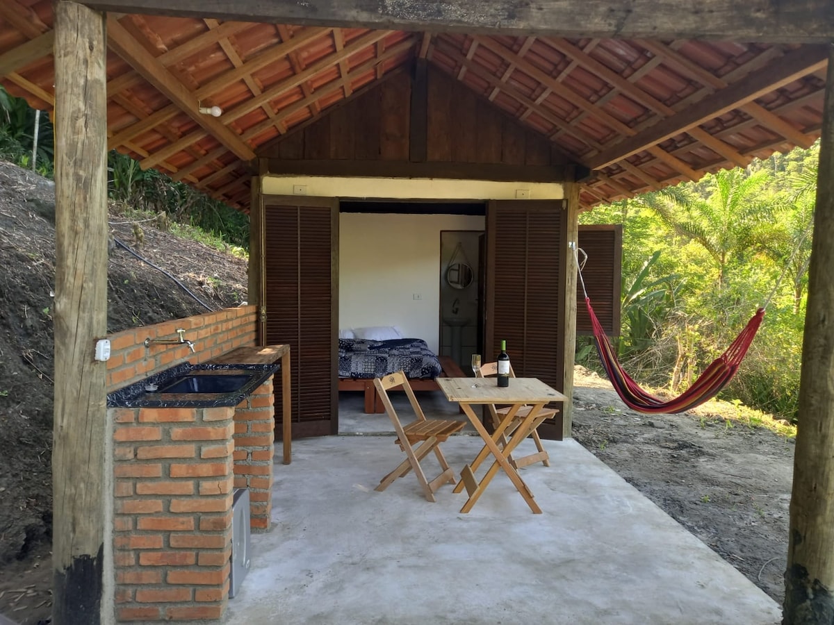 Chalet privado en el Bosque Atlántico, a orillas del río Ribeira en Iporanga, dentro del Parque Estadual Turístico do Alto Ribeira. Tiene una cama doble y una individual, baño con ducha de gas, hidromasaje, minicocina con encimera, minibar, ollas, vajilla y cubertería. Terraza con balcón colgante, minibarbacoa y chimenea. Uso colectivo: playa privada y sauna solo para huéspedes. ¡Lugar ideal para descansar y estar en contacto con la naturaleza!