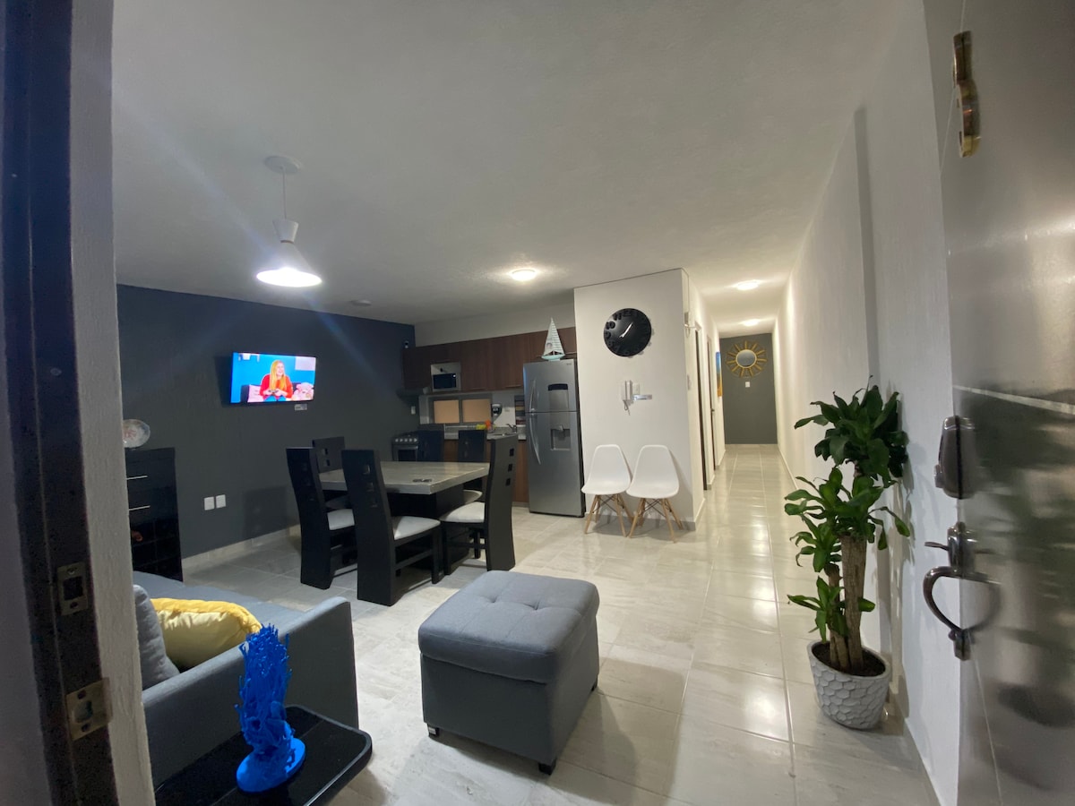 Ground-floor apartment with air-conditioned rooms surrounded by tourist attractions, restaurants, shopping malls, and museums, 3 minutes from the beaches and 2.5 km from the Veracruz Aquarium (1 block from the Carnival and marathons). - Living and dining room with Smart TV, and a full kitchen overlooking a small private central garden. - Master bedroom with king-size bed, bathroom, walk-in closet, and Smart TV. - Secondary bedroom with double bed and closet. - One-car garage with electric gate.