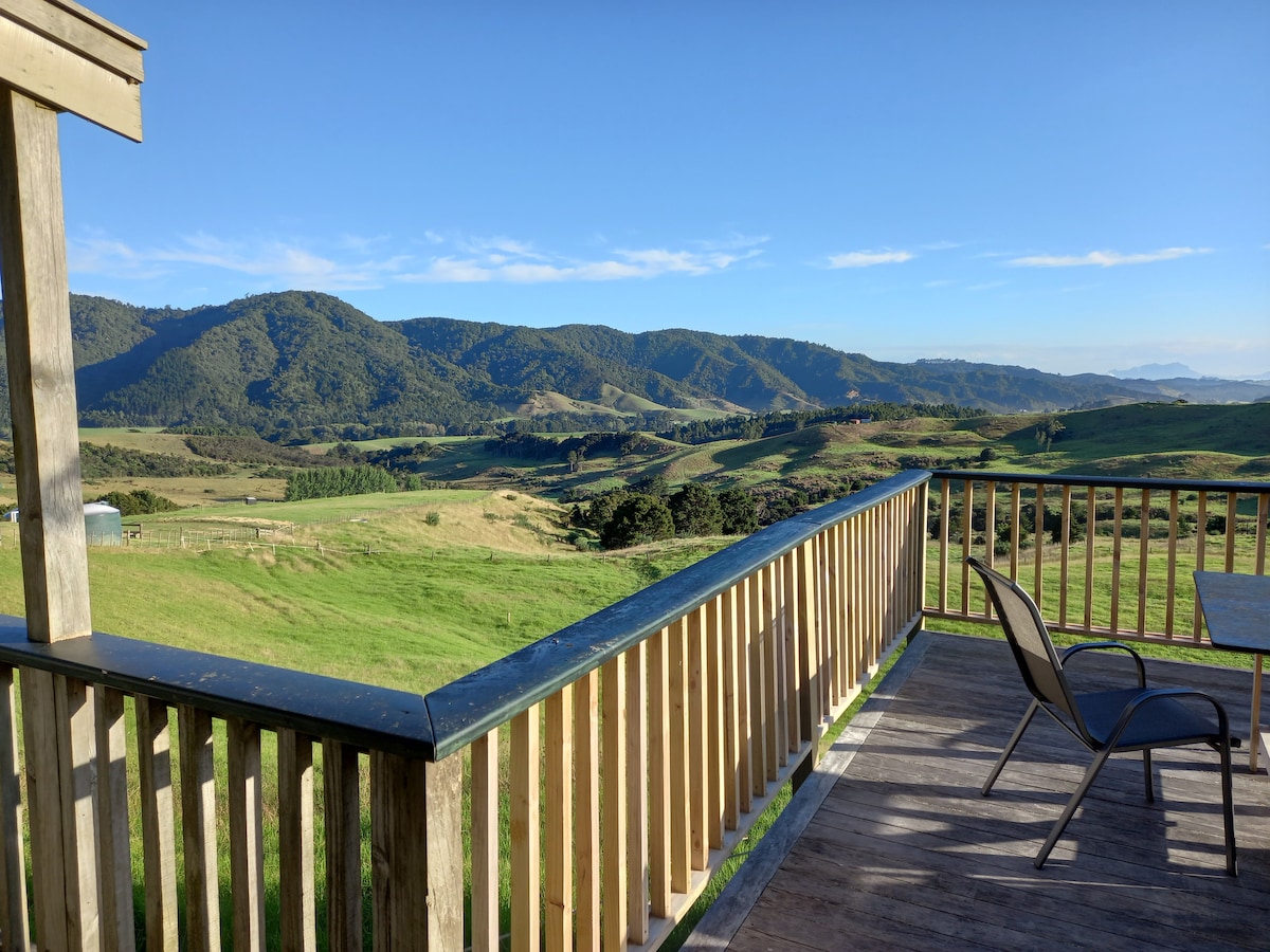 Take a break and enjoy the peace and beauty of the Waipu hills. The cabin is located well away from the main house with it's own carport. It has a kitchenette with fridge, hotplates, microwave and a small oven . The spacious deck is prefect for outdoor dining. Relax and enjoy the rural views or head out and explore the area. Waipu township just 10 mins away. Waipu Cove and Uretiti beaches 15-20 mins. Waipu Caves and Piroa Fall are definitely worth a visit too.