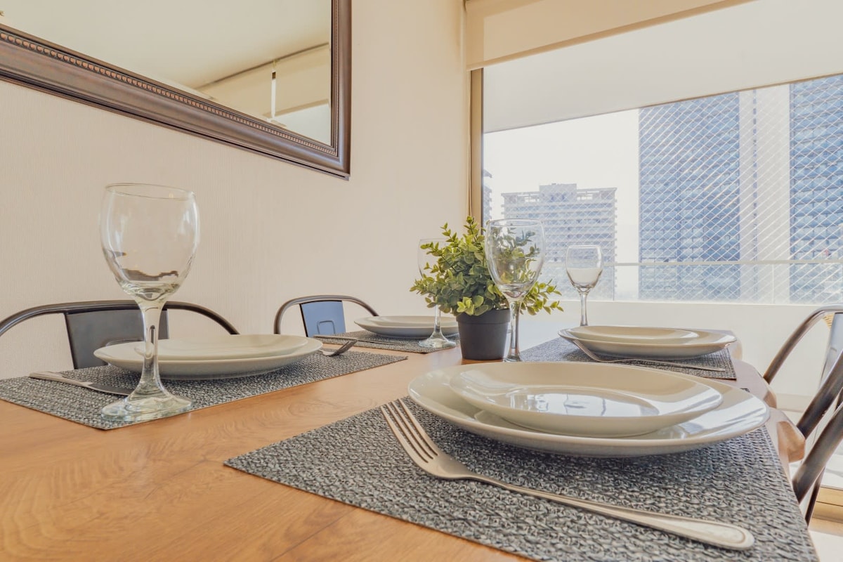 Departamento nuevo, ubicado en una de las zonas mas exclusivas de la Region Metropolitana. A pasos de Parque Araucano, una de las principales areas verdes de Las Condes, del sector financiero Nueva Las Condes, como también de Mall Parque Arauco, Open mall, Bancos, supermercados, Patios de comida y de Clinica Alemana. El departamento esta equipado con todo lo necesario para una gran estadía. Cuenta con cama King, sofa cama, cortinas dobles, Tv 55”, cafetera Nespresso, lavavajillas entre otros.