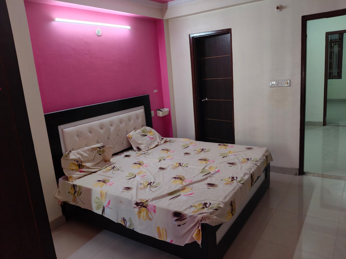*APROVECHA LA OPORTUNIDAD* de disfrutar de la realeza de Pinkcity en este hermoso apartamento de lujo situado en el primer piso, decorado con una mezcla de interiores modernos y tradicionales. Aire acondicionado en el salón/2 dormitorios con aire acondicionado (cama tamaño king)/2 baños/cocina totalmente equipada. Enorme patio. Propiedad en esquina, excelente ventilación, todos los servicios básicos. Colchón adicional/lavadora (de pago). Amplio aparcamiento/RO/CCTV. * ALOJAMIENTO REGISTRADO EN EL DEPARTAMENTO DE TURISMO, GOBIERNO DE RAJASTHAN* **ASEQUIBLE PERO DE LUJO**