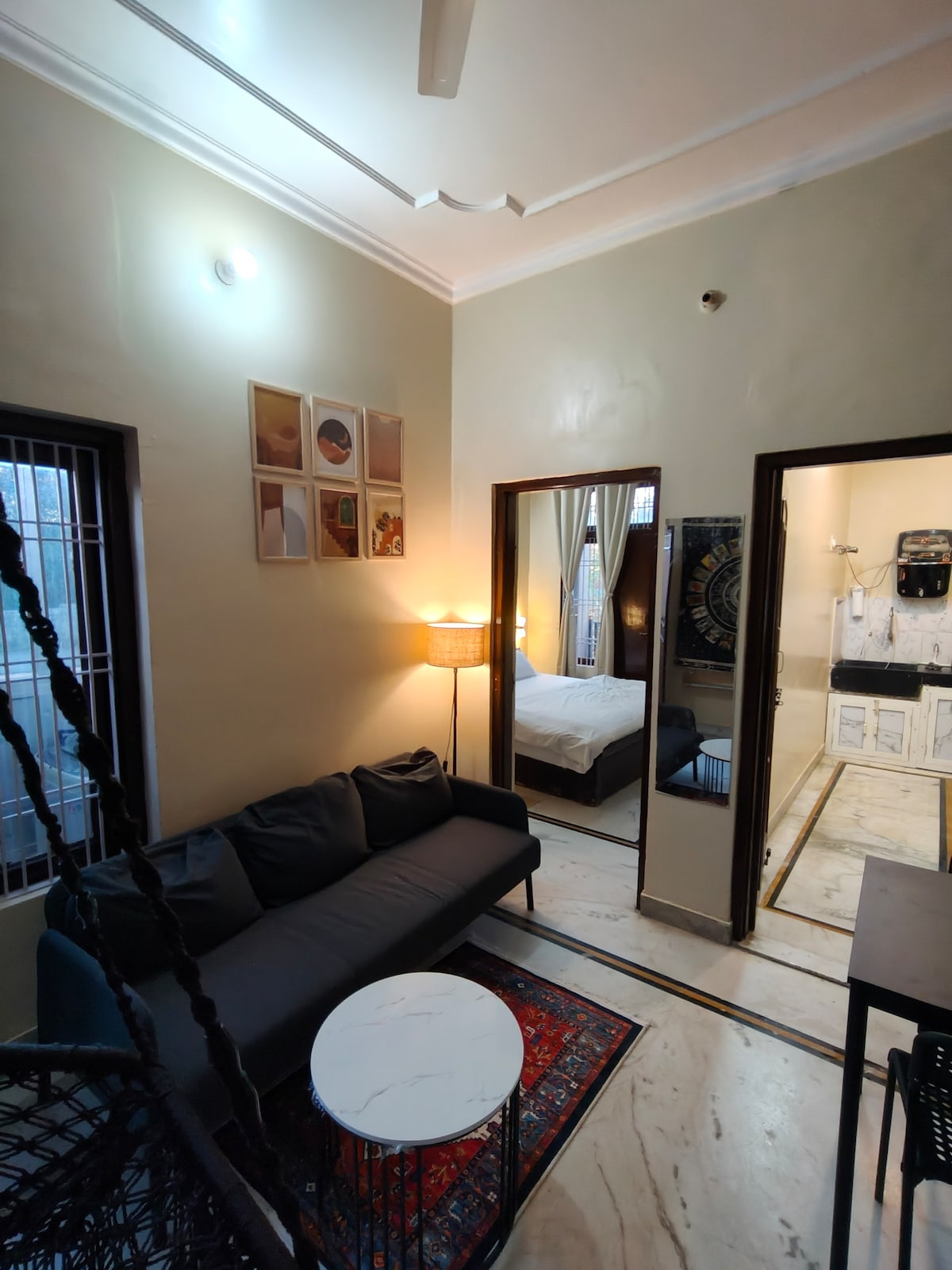 Experiencia LOOP: Rustic, una encantadora estadía de 2 dormitorios en el centro de la ciudad de Jodhpur. A solo 5 km de la estación de tren y Old Blue City, y a 6 km del aeropuerto. Disfruta de una cocina totalmente equipada con estufa de gas, horno y RO, un acogedor vestíbulo, comedor separado e interiores rústicos. Chef disponible a pedido. Entorno seguro con cómodo estacionamiento. Un hogar cálido y elegante para familias, amigos y viajeros por igual.