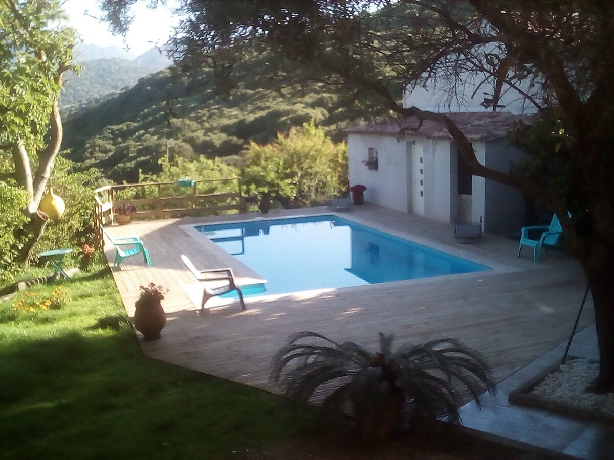 En Casa di Colomba, tranquilidad entre el mar y la montaña En el corazón del sur de Córcega, con vistas al golfo de Valinco, el pueblo de Fozzano, con sus pintorescas calles, cuenta la historia de Colomba (famosa por Prosper Mérimée) y sus vendettas. El alojamiento es un apartamento con carácter con entrada independiente y jardín privado situado en la planta baja de la casa donde vivió Colomba, un edificio de granito en la parte inferior del pueblo.