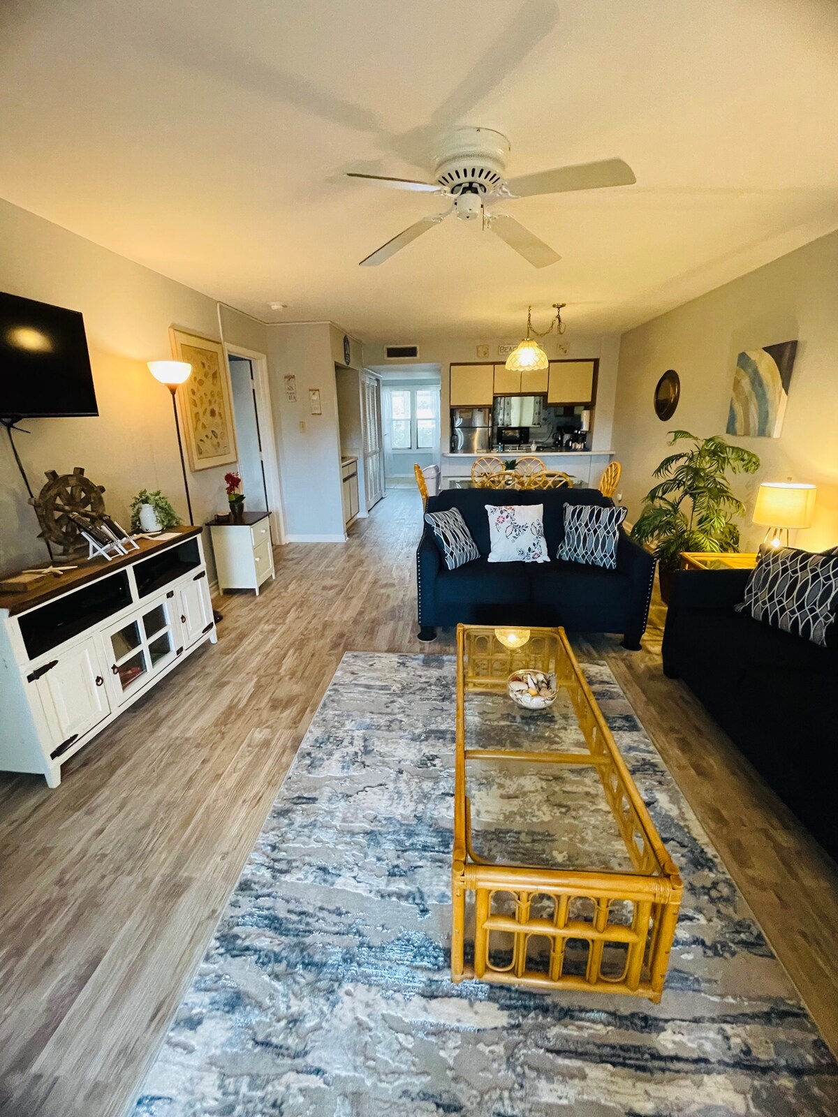 Soft light, ocean air, and space to slow down—this two-bedroom condo feels like a deep breath. Everything is set up for comfort and calm, so you can stop managing and start relaxing. • 🛏 Primary Bedroom: A peaceful king retreat with ocean views and a private bath—perfect for quiet mornings and deep sleep • 🛏 Second Bedroom: A cozy king suite with its own bathroom, giving everyone space to unwind and feel settled • 🛋 Living Area: An open, light-filled space with comfortable seating and a Smar