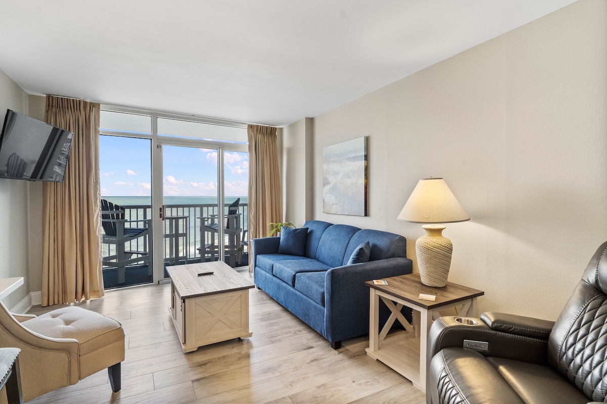Escápate a “The Sunrise Cove”, un departamento de 1 dormitorio frente al mar en North Myrtle Beach para hasta 6 huéspedes. Ubicada en el cuarto piso, disfrute de impresionantes vistas de la costa sin obstáculos desde su balcón privado. Este refugio ofrece la combinación perfecta de comodidad en el hogar y diversión en el centro vacacional, con piscinas, un río lento y la playa a solo unos pasos. Ideal para familias y parejas, está a solo minutos del popular Barefoot Landing para ir de compras, cenar y divertirse.