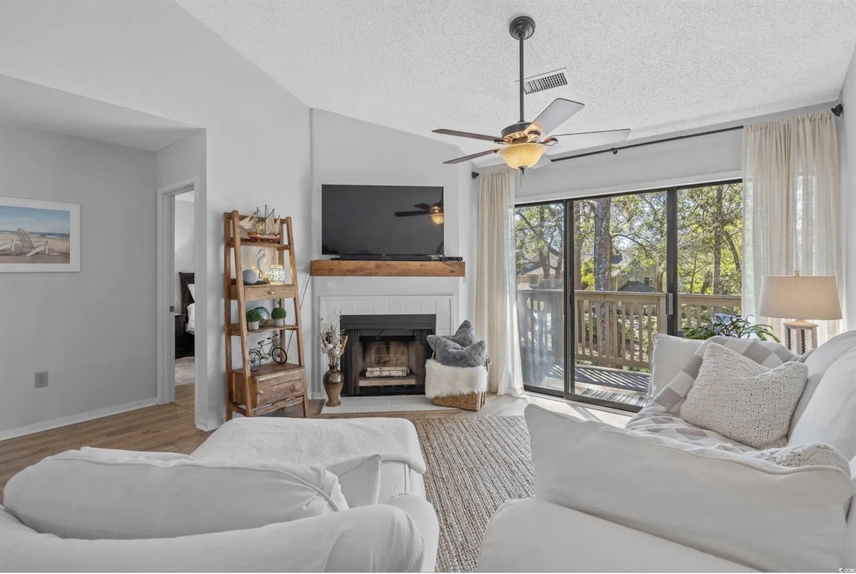 ¡Relájate en este apartamento tranquilo y elegante en el corazón de Myrtle Beach! Las características incluyen una cama tamaño queen, un sofá cama de tamaño completo, cocina completa, lavandería y estudio/oficina. Con un enorme vestidor y abundante luz natural, es la escapada perfecta. Camina hasta la playa, el Arcadian Shores Golf Club o el Soho bar. Las atracciones cercanas incluyen Barefoot Landing y Tanger Outlets. Ubicado en una comunidad cerrada con piscina, tenis, canchas de pickleball, voleibol, áreas de barbacoa, minigolf y lavado de coches.
