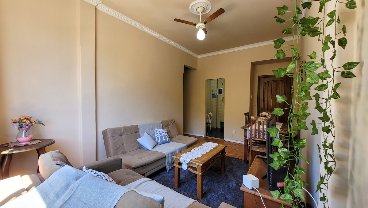 Apartamento inspirado en el concepto de loft boutique. Moderno, funcional y cómodo, ubicado junto al metro y la playa de Copacabana. Apartamento con aire acondicionado dividido de 18.000 BTU, 2 ventiladores de techo, TV inteligente de 32", wifi de alta velocidad, ropa de cama y baño, cocina completa con estufa, nevera, microondas, ollas y sartenes y todos los utensilios. Registro de entrada: después de las 14:00 Salida: hasta las 11:00 Check-in sin restricción de horario por cerradura electrónica.