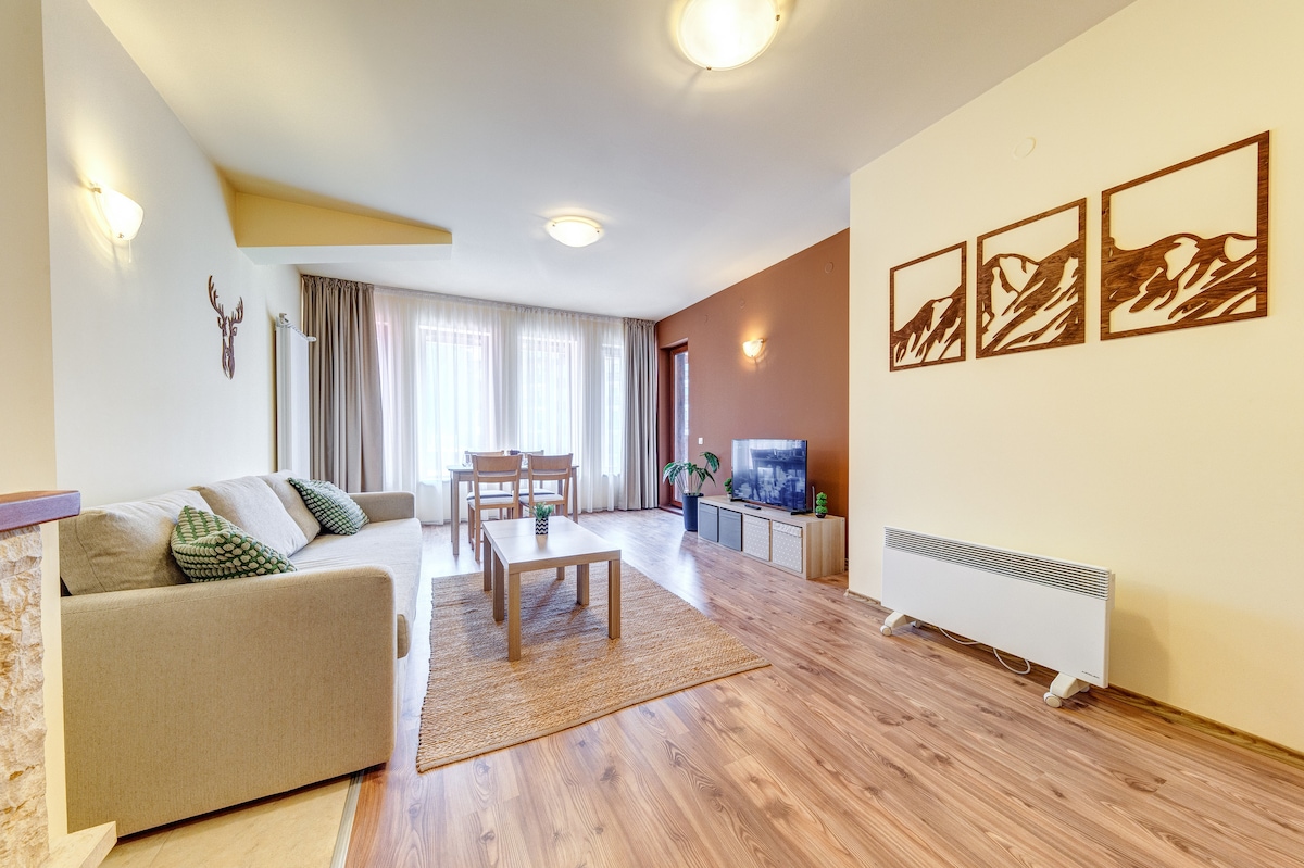 Bienvenido a nuestro acogedor apartamento de 1 dormitorio en Grand Resort Pamporovo, enclavado en los pintorescos alrededores de Pamporovo. Entra y serás recibido por un espacio de vida cálido y acogedor, cuidadosamente amueblado para garantizar tu comodidad y relajación. El dormitorio cuenta con una cómoda cama que garantiza una noche de sueño reparador. En los meses de invierno, disfruta de emocionantes experiencias de esquí y snowboard en las prístinas pistas.
