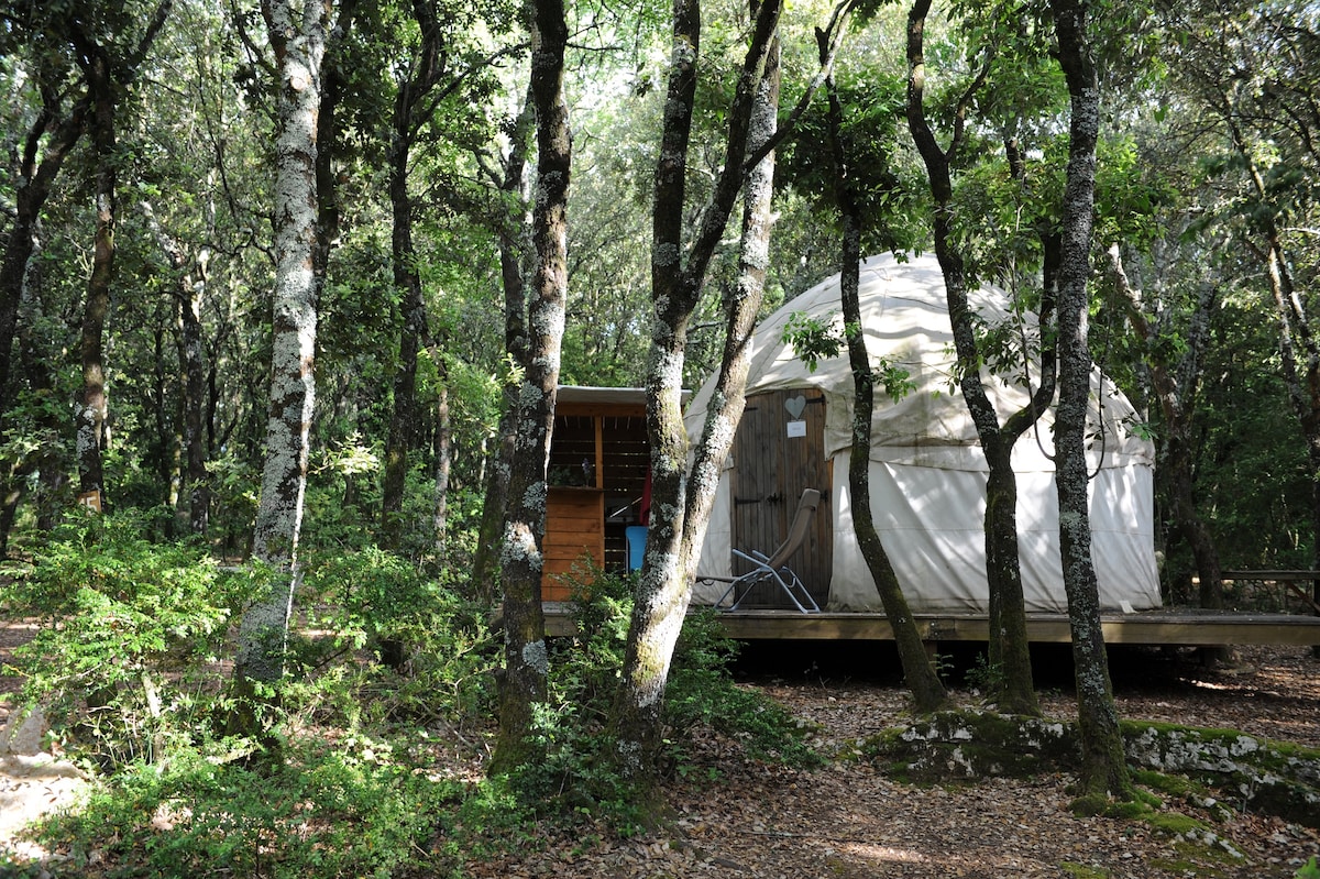 Bienvenido(a) en Cévennes al campo de la yurta encaramada. Encaramada porque se encuentra en una hermosa plataforma de madera entre montañas y bosques, rodeada de terrazas en cascadas que toman el sol como rehenes y cuidan la sombra de las siestas. Una vida afuera, al aire libre. Paseos en abundancia y el Chassezac, divina buceo en aguas claras, a poca distancia. Salvaje al extremo para algunos, al margen para otros. Un poco, por cierto, un pequeño pedazo de otra cosa.