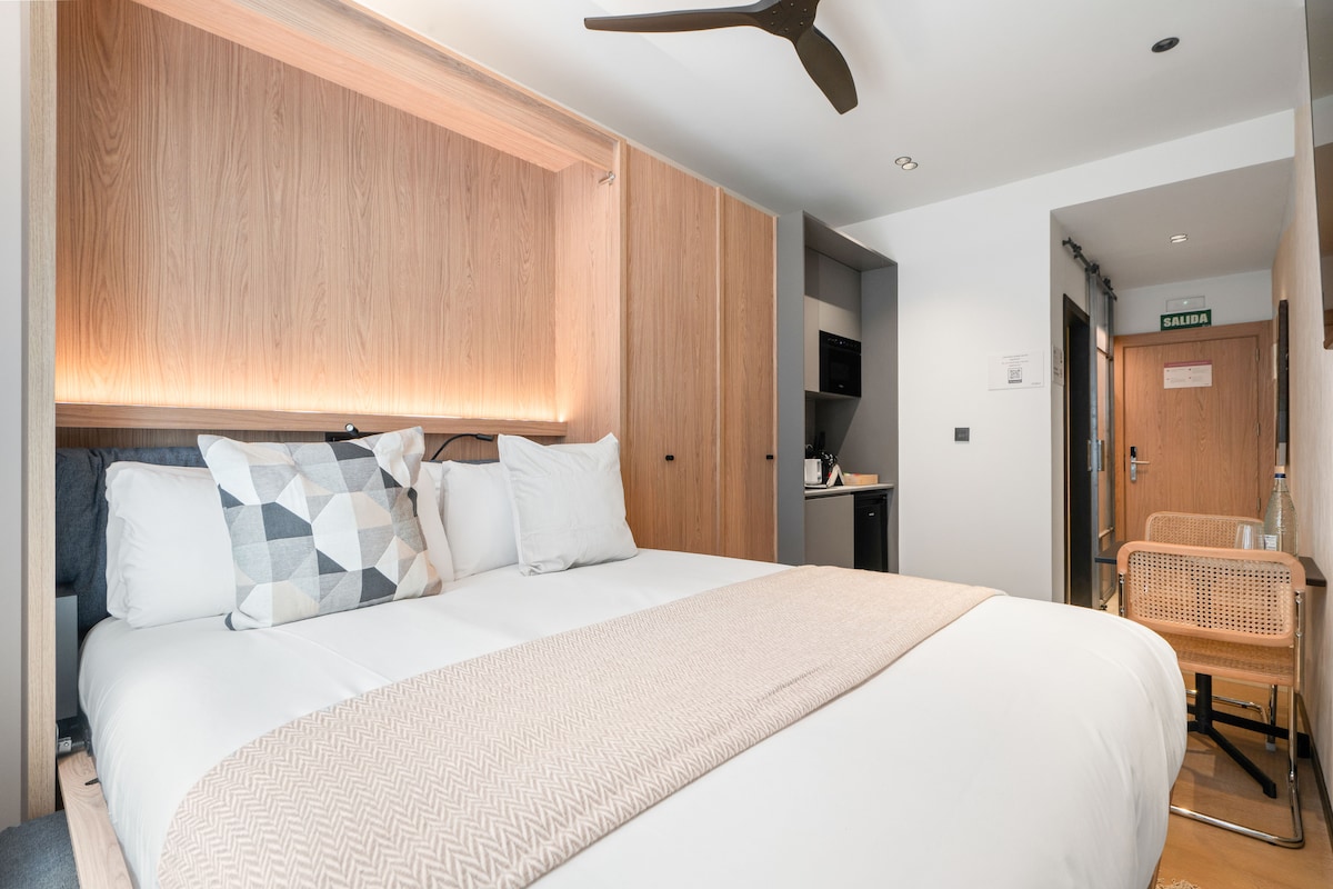 Santa Sofia Suites by Break Point te invita a descubrir una nueva forma de hospedarte en el corazón de Madrid, en el emblemático barrio de Sol. Este hostal boutique reúne 13 suites diseñadas bajo el concepto bed&refresh, un refugio urbano pensado para quienes buscan descanso, confort y serenidad en pleno centro. Cada habitación combina diseño contemporáneo, elegancia y funcionalidad, ofreciendo un espacio ideal para relajarse y recargar energías tras un día explorando la ciudad.