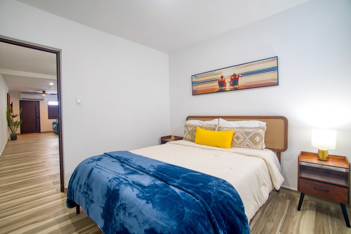 Suite ejecutiva: 3 min playa, elegancia, A/C