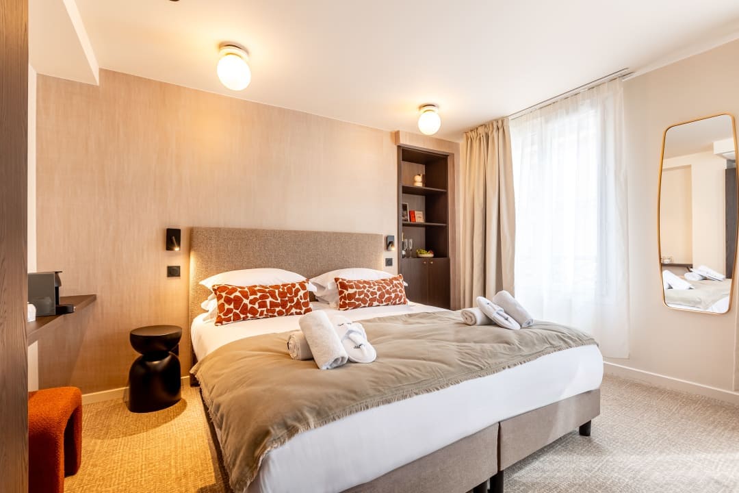 Bienvenue dans votre chambre, pensée pour allier confort, élégance et fonctionnalité au cœur de Paris. Située au sein d’un hôtel design entièrement rénové. La décoration sobre et contemporaine, fidèle à l’univers de l’hôtel, crée une atmosphère apaisante et chaleureuse, parfaite pour un séjour parisien réussi.