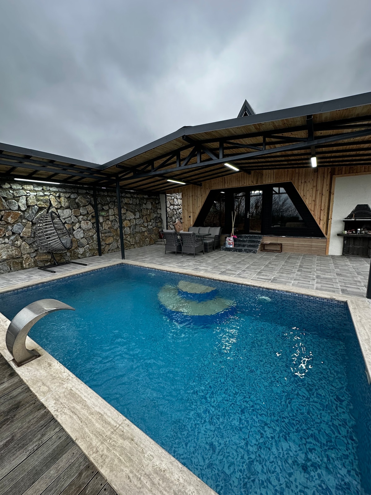 bungalow de piedra safari en sapanca (nuestra piscina está climatizada)