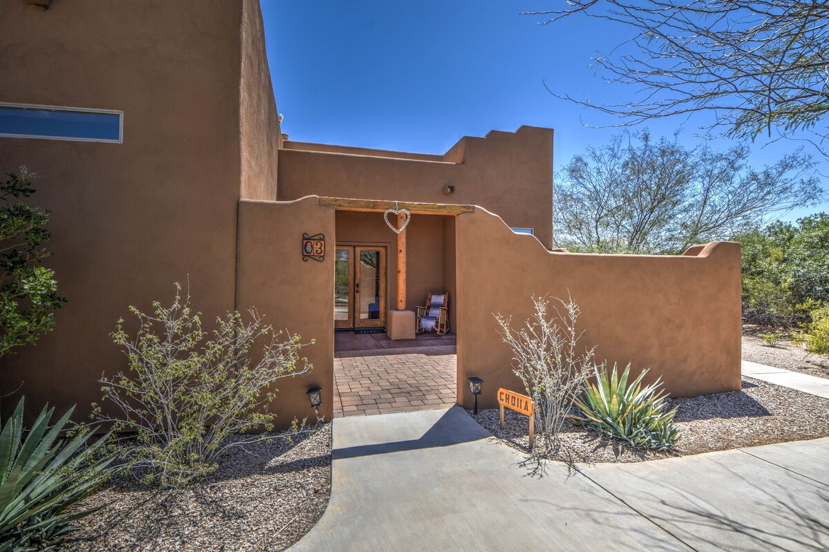 Retiro perfecto y escapada al desierto. Recién decorado y completamente renovado. 3 dormitorios, 2 baños, piscina climatizada, asientos al aire libre y mucho espacio para relajarse. Barbacoa, sombrillas y juguetes de piscina. Bonito barrio tranquilo y seguro, 2 televisores inteligentes, wifi, chimenea al aire libre y chimenea interior para noches de cine perfectas. Todo lo que necesitas para disfrutar de una escapada soleada. Increíble senderismo a 30-50 minutos. He creado un lugar para escapar y rejuvenecer. Piscina de agua salada.