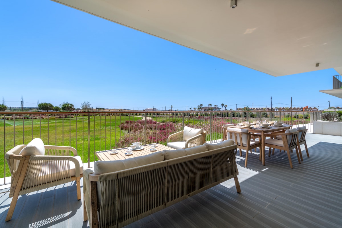 Apartamento de 1 dormitorio en el resort de 5 estrellas Herdade dos Salgados, ideal para parejas con hasta 2 niños que buscan unas vacaciones cómodas y relajadas cerca de la naturaleza, la playa y el golf. El apartamento está en el segundo piso, tiene un amplio balcón (17 m2), un enorme salón (44 m2), excelentes vistas a las 7 piscinas y se encuentra en un resort con amplias zonas verdes (750 palmeras y 2.500 olivos). El resort tiene conexión directa con Salgados Golf y con la playa.