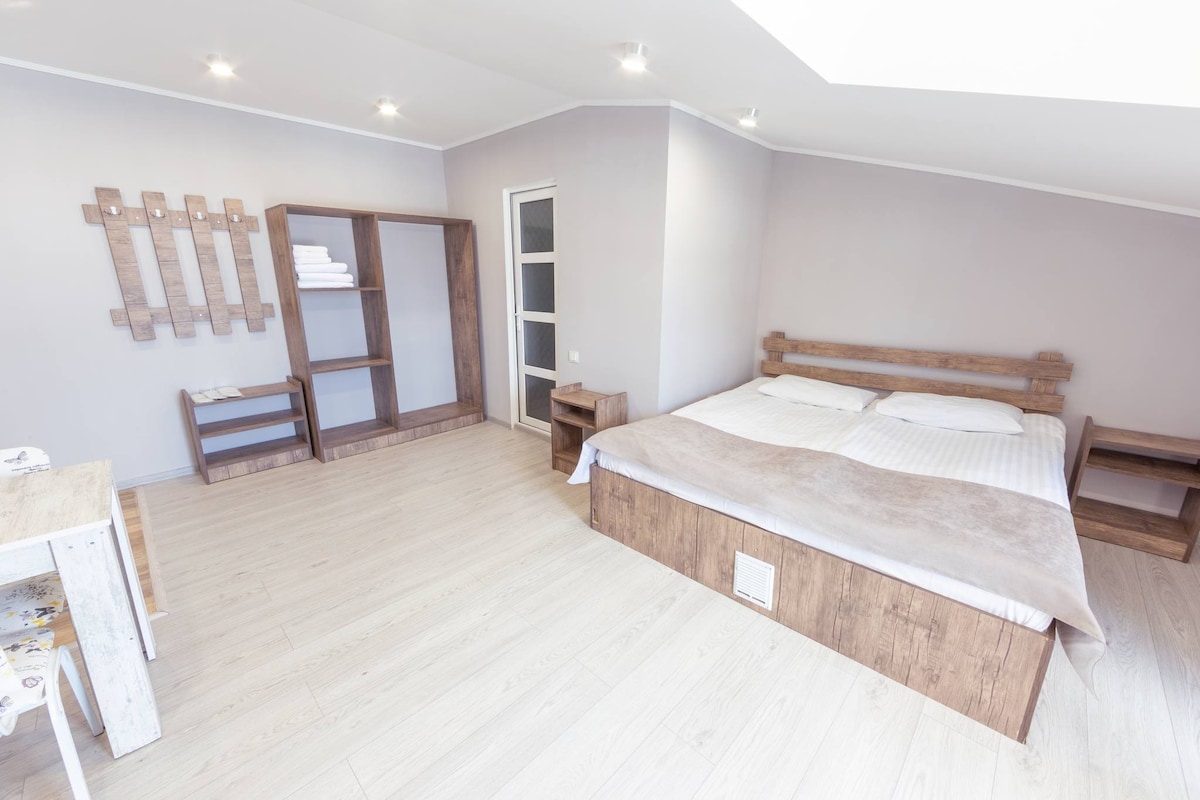 Habitación muy limpia y luminosa en el hotel. Todas las habitaciones están equipadas con sistema de climatización. Las habitaciones con un diseño elegante son muy acogedoras y cómodas, equipadas con todo lo necesario. Esta habitación está diseñada para dos. Disponemos de camas individuales y una cama grande (familiar). El hotel en una zona tranquila no está lejos del ruidoso centro.