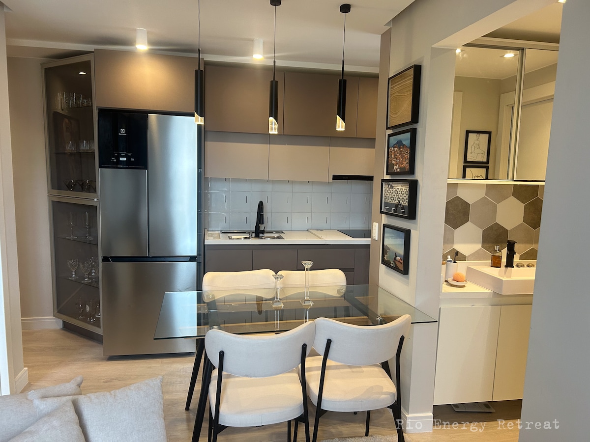 Disfruta lo mejor de Ipanema en este departamento completo con suite privada, ubicado en un apart-hotel con servicio de limpieza diaria incluido. Aloja hasta 4 personas con cama queen en la suite y sofá cama cómodo en la sala, aire acondicionado potente en ambos ambientes, cocina equipada, ropa de cama, TV e internet. A pasos de la playa, la laguna y el metro, es ideal para parejas, familias o viajes de trabajo. Estructura de hotel con comodidad de hogar en lo mejor de la Zona Sur de Río.